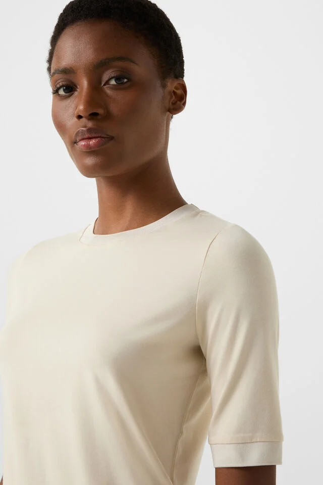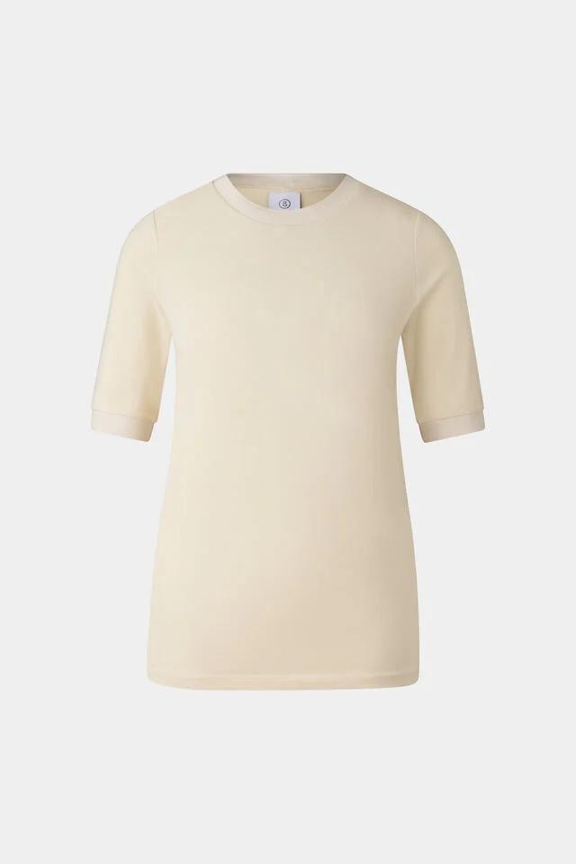 T-shirt in a straight silhouette, round collar in elastic fabric, short sleeves with elastic ribbed cuffsJ