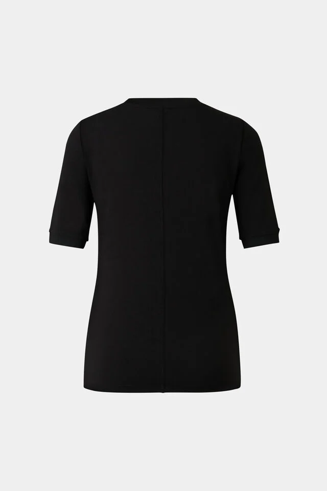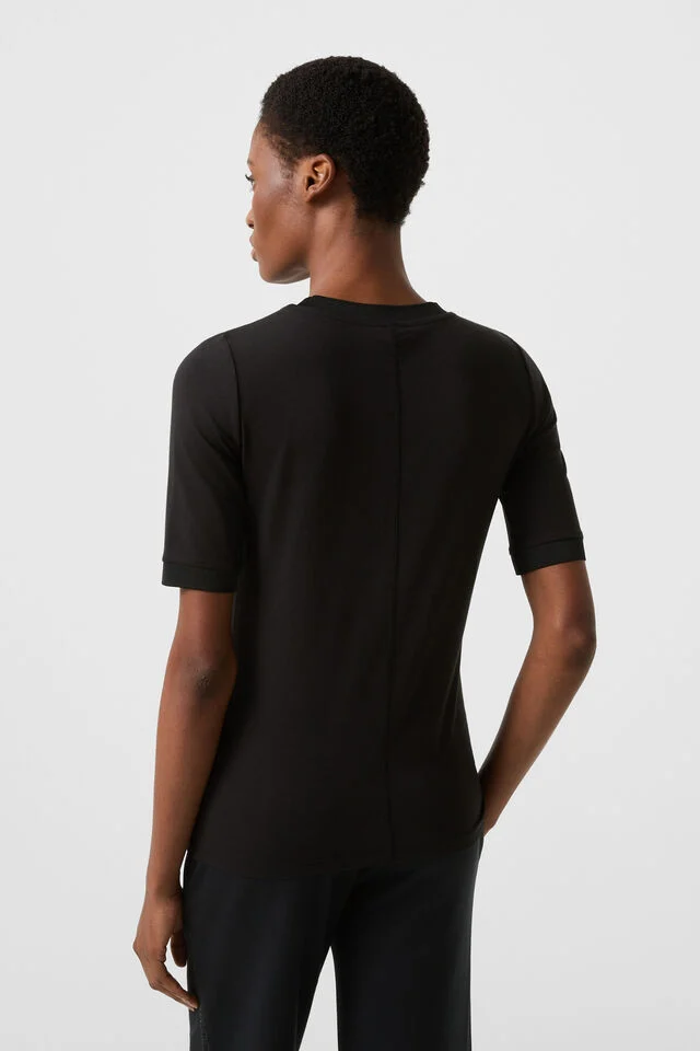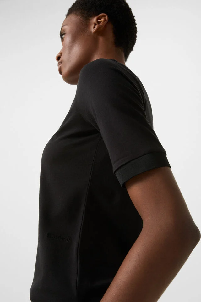 T-shirt in a straight silhouette, round collar in elastic fabric, short sleeves with elastic ribbed cuffsJ