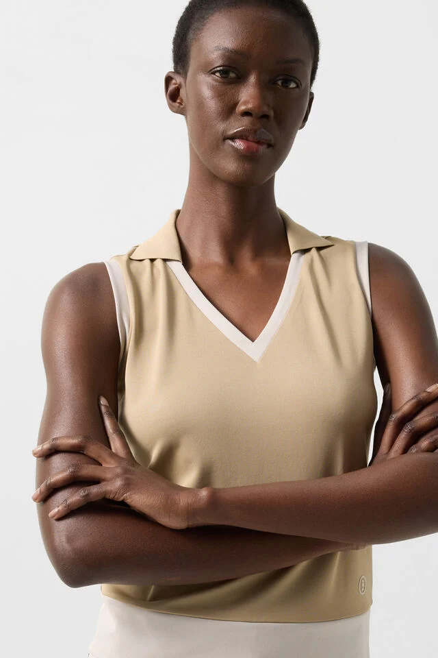 Sleeveless polo shirt in a straight silhouette highlighted with contrasting pieces for a sleek and modern accent