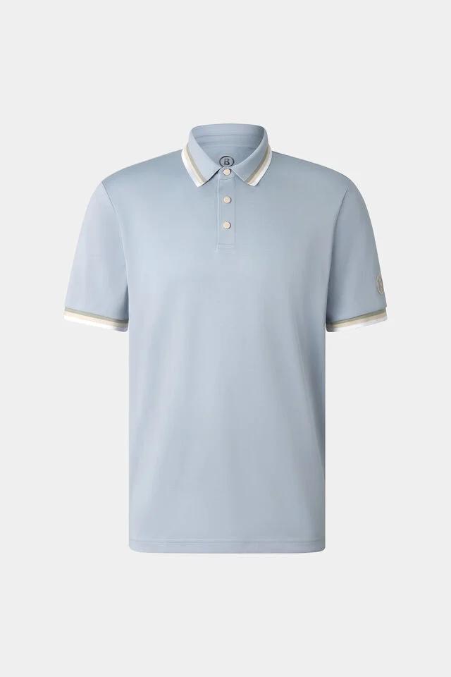 Раирани акценти на яката и маншетите, B-печат на ръкава и двойно зашит подгъв
