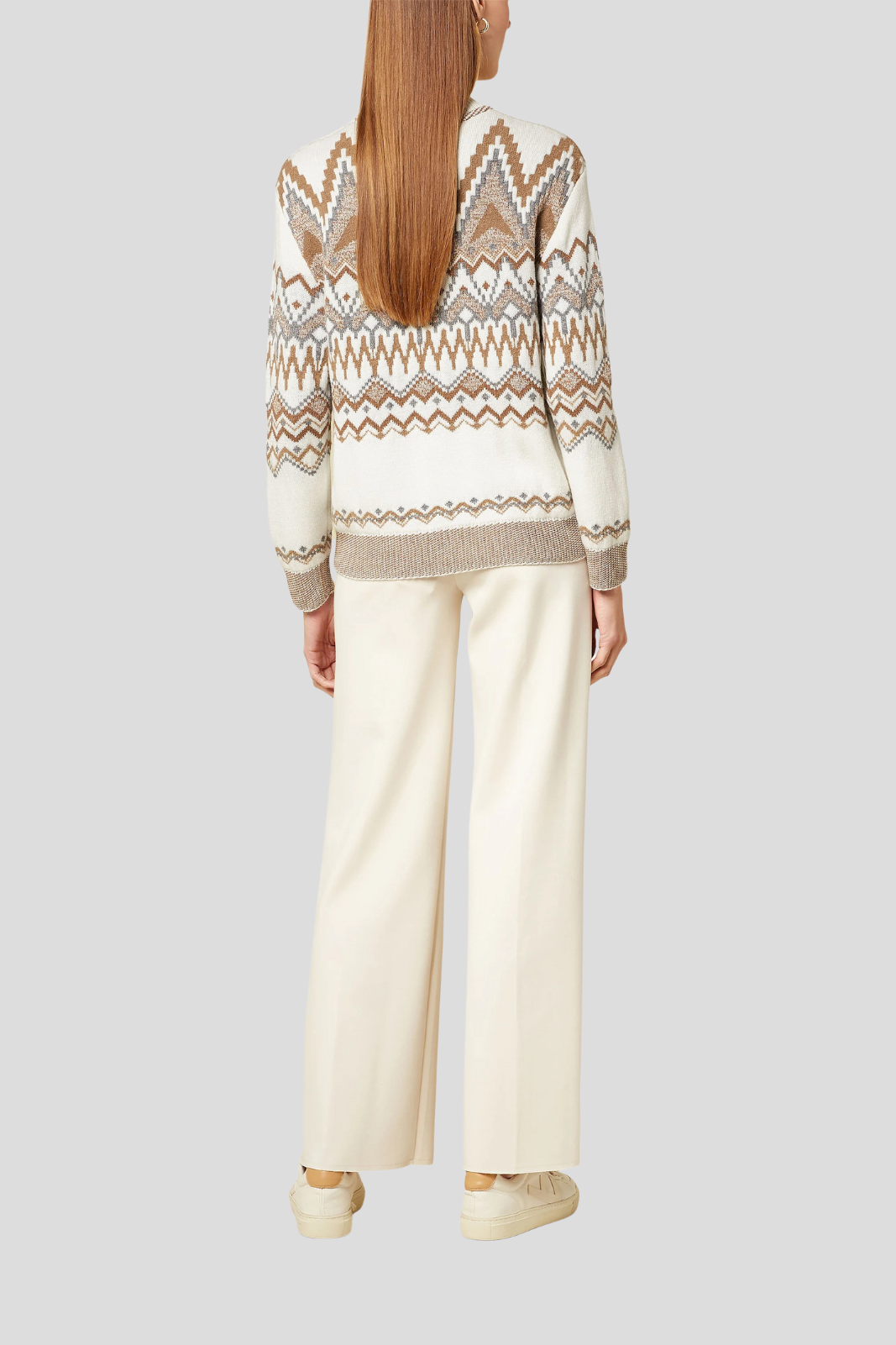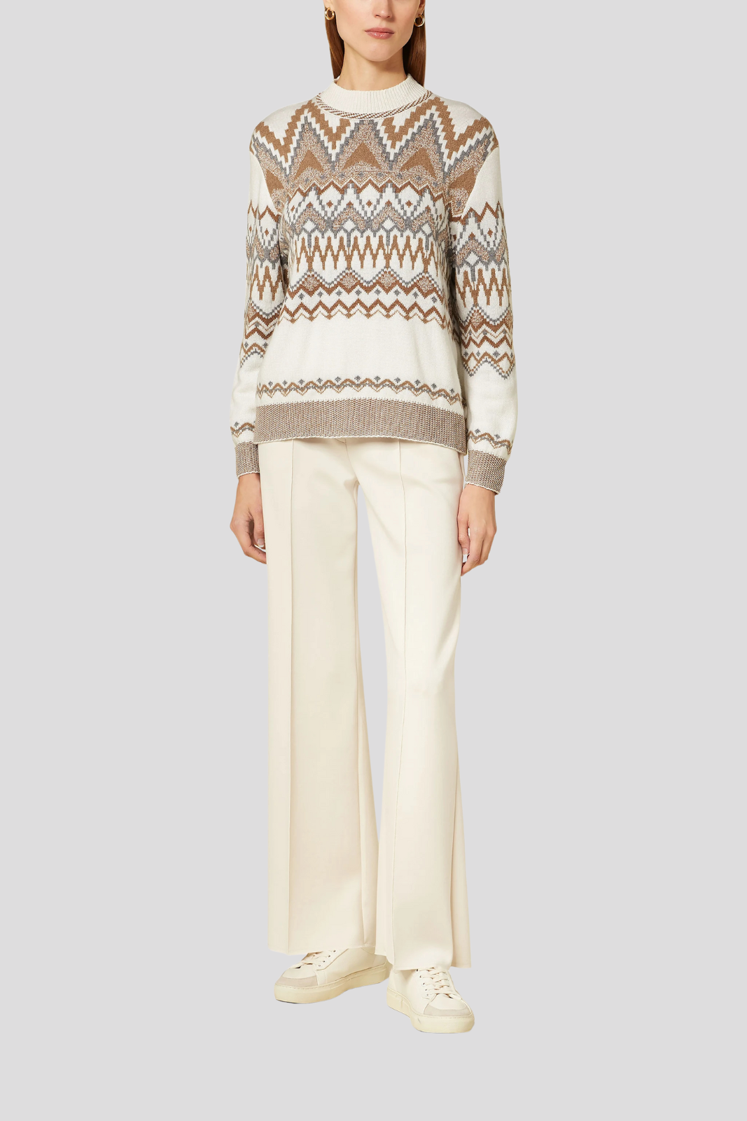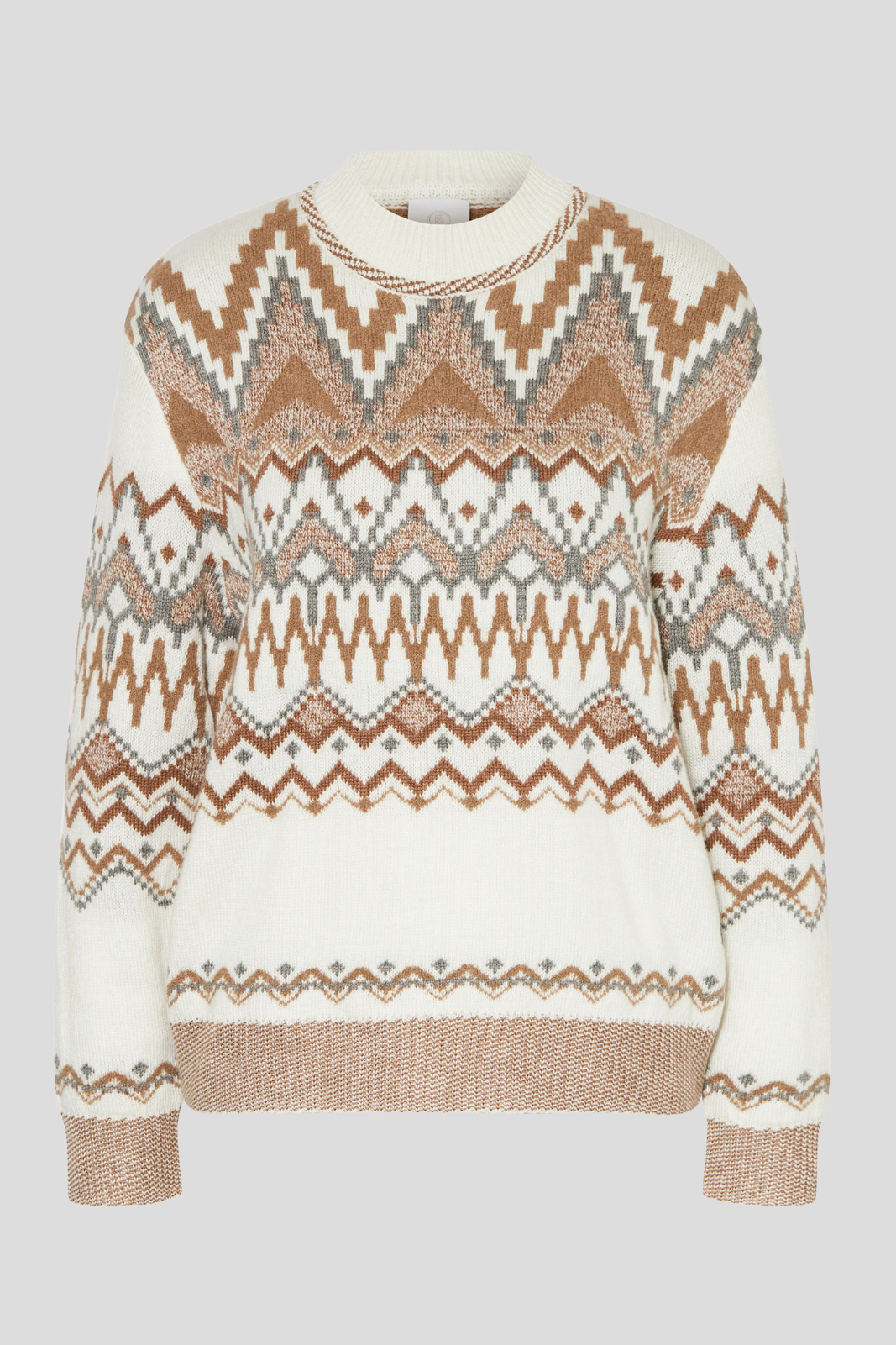 Декориран с изцяло отпечатан мотив, пуловерът е приятен на допир и идеален за ежедневна визия