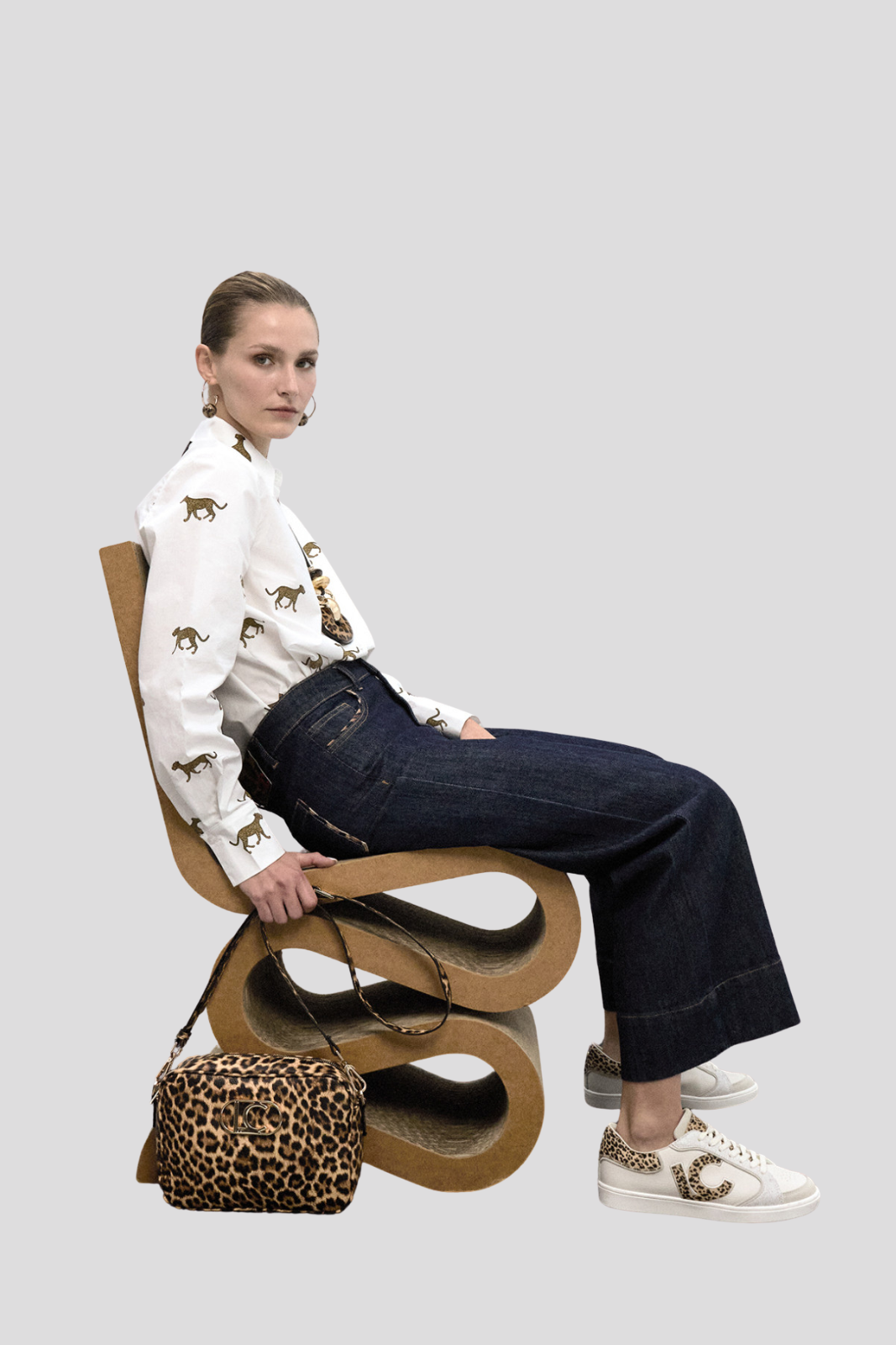 Crafted from durable material, it features a zip for a secure fastening and gold-tone metal detailing for a sophisticated finish