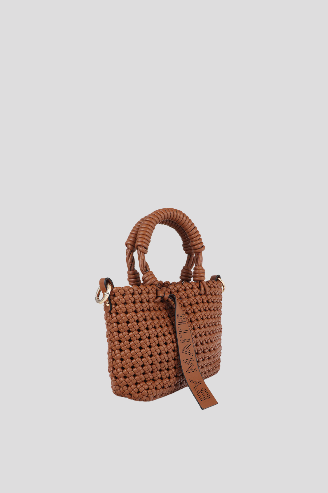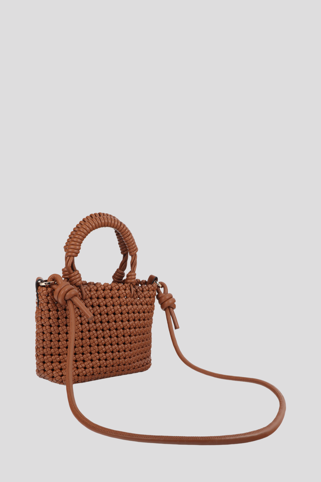 Моделът в топъл кафяв нюанс е украсен с уникални възли, придаващи обем и характерен акцент