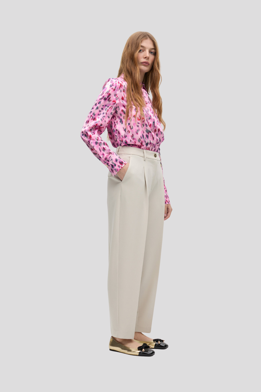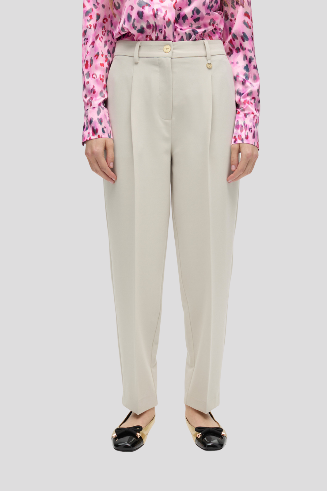 Панталон в прав силует и неутрален тон, изработен от висококачествен плат