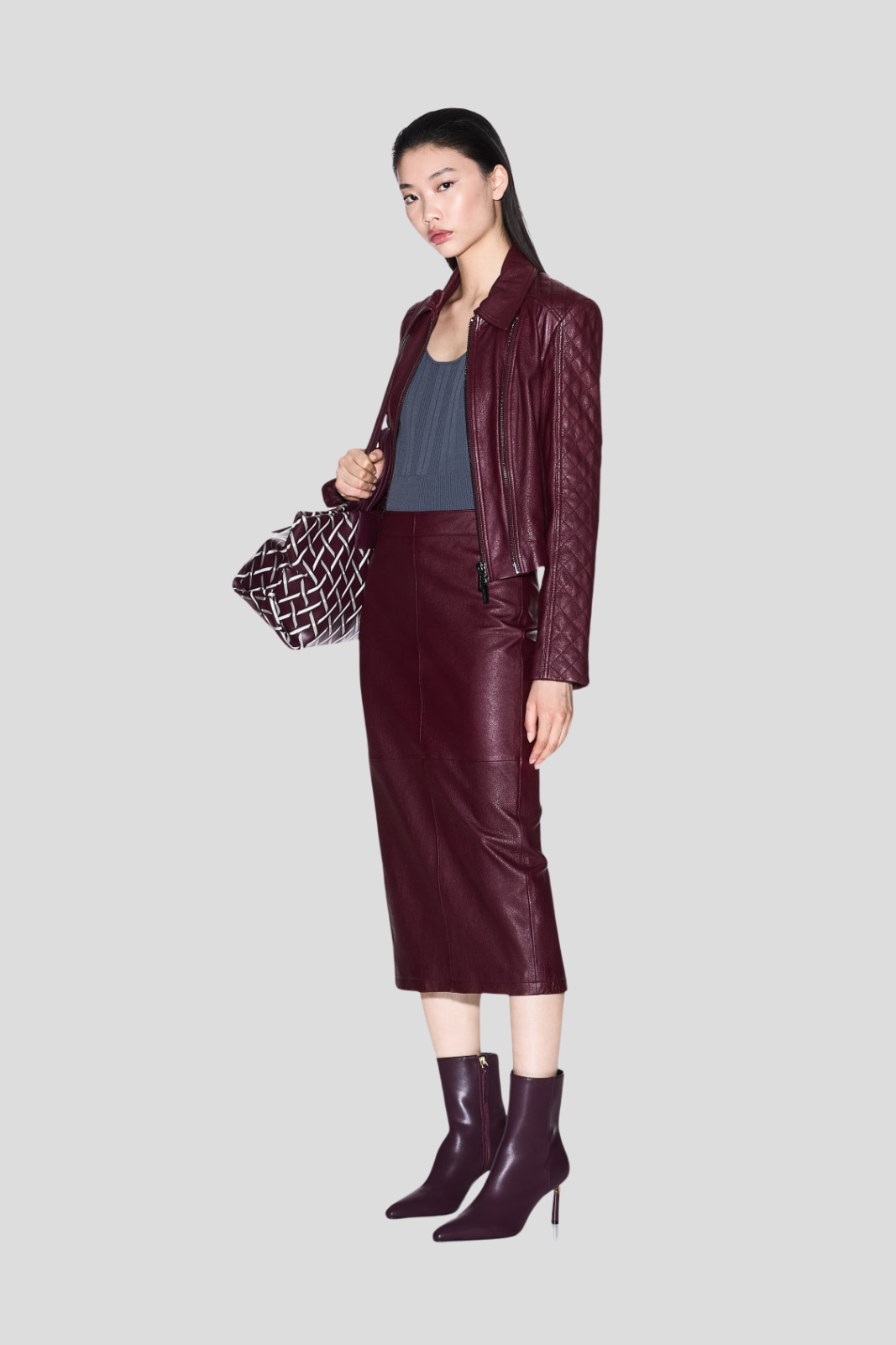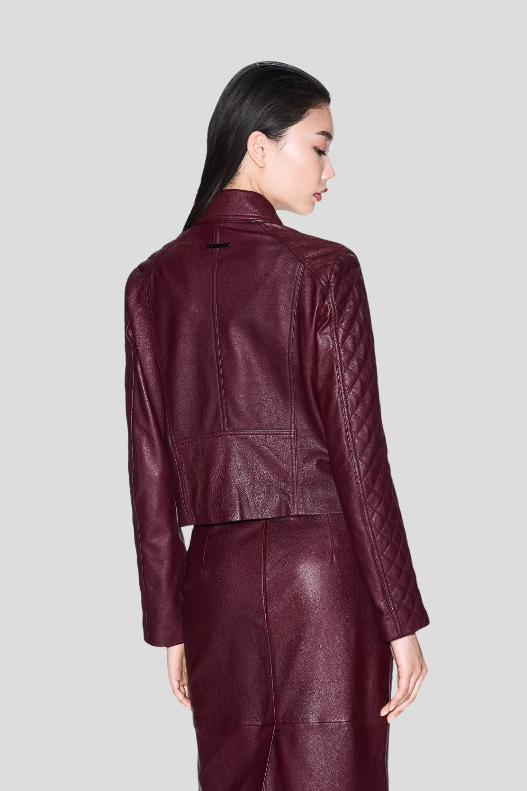 Its biker look embodies the modern rebel spirit with sophisticated elegance – diamond stitching on the shoulders and exposed metal zippers add character and genuine style