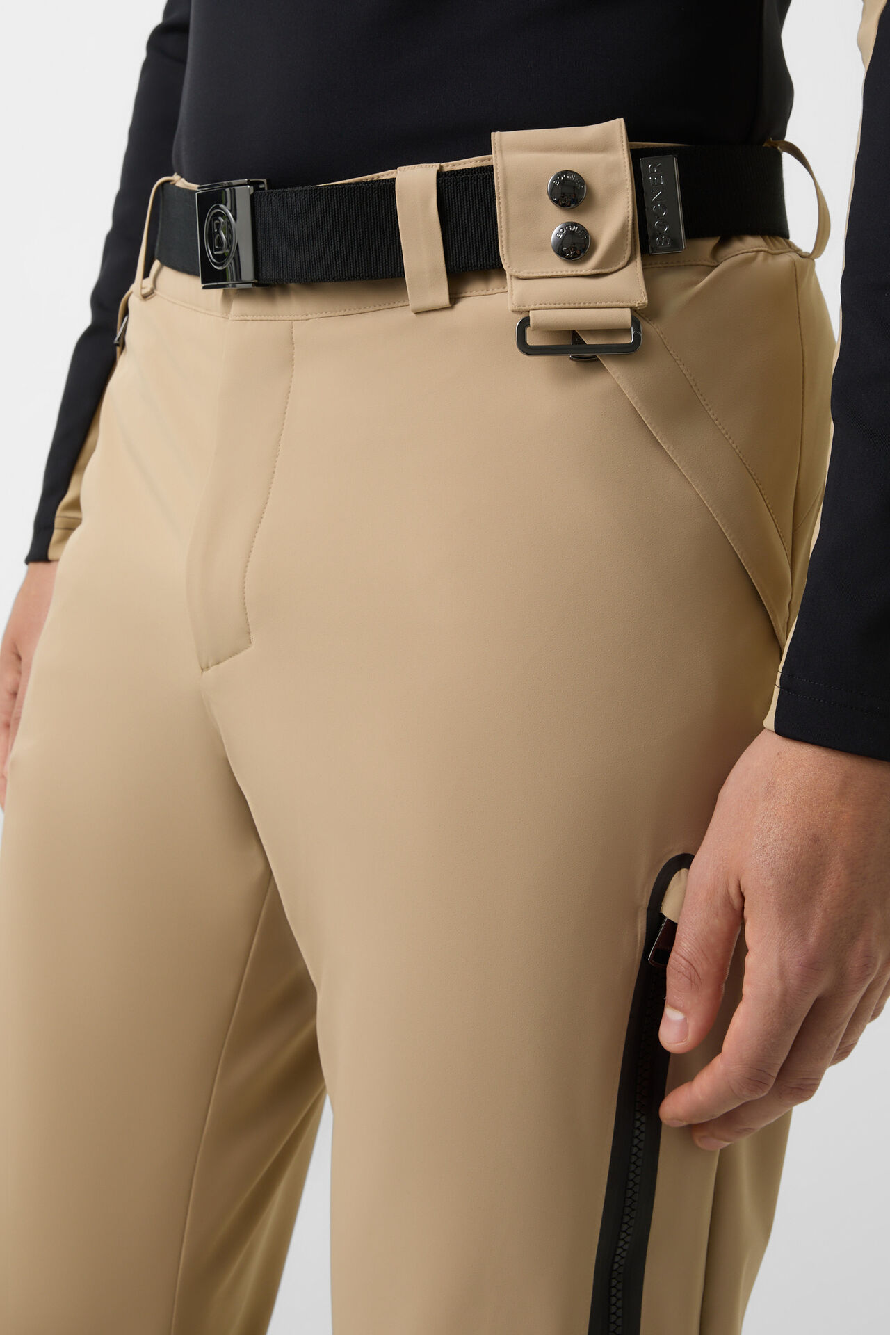 Functionality is brought to perfection by leg cuffs with edge protection, a concealed back zip and internal snow guard, a small flap pocket, teak-tack fastenings and a metalised D-ring, as well as two concealed side pockets and a back pocket with concealed zip