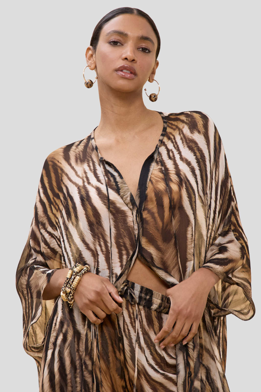 Риза със класически силует, отличаваща се с впечатляващ зебра принт