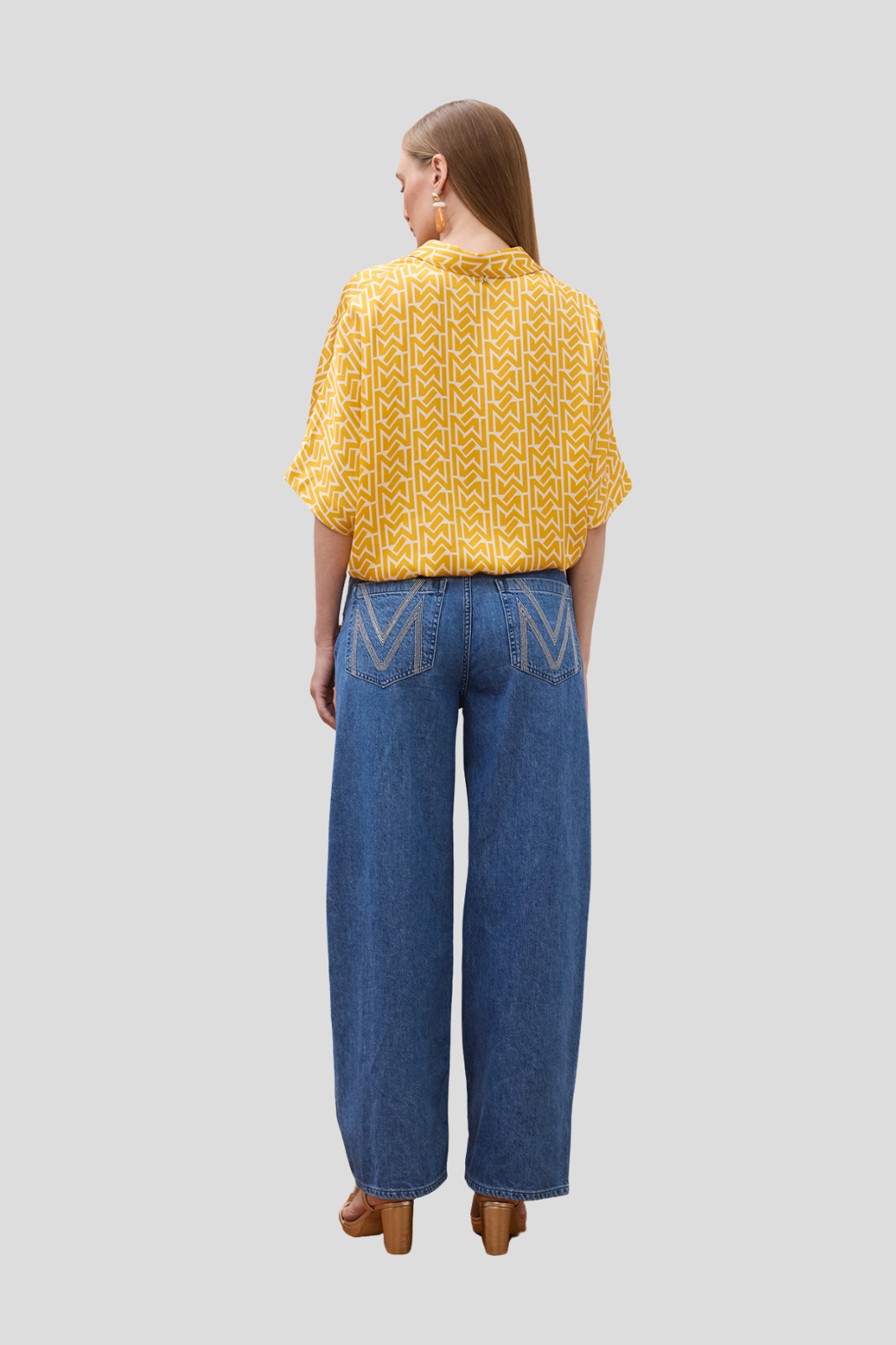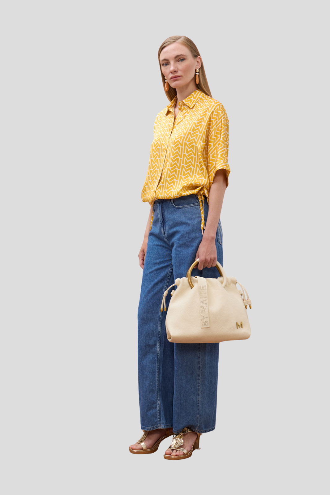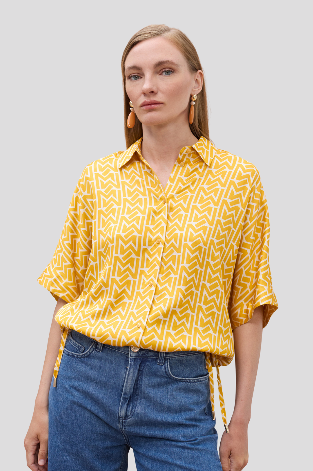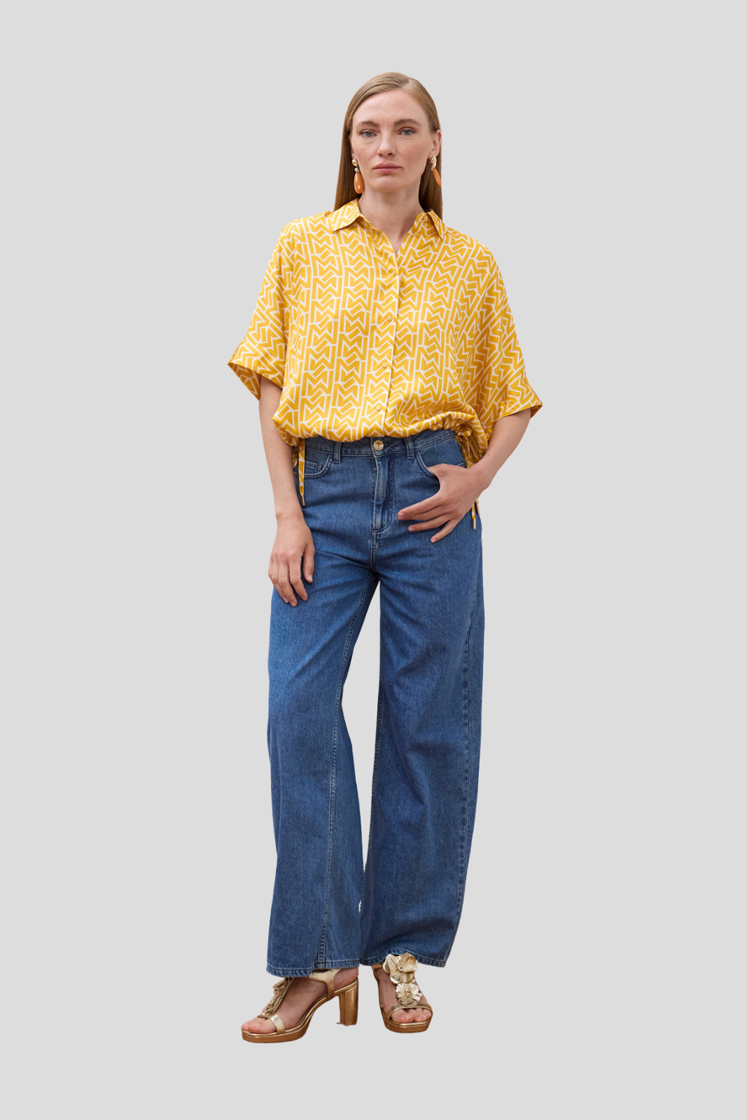 Сатенена риза с изискан принт „Emes“ и класически силует