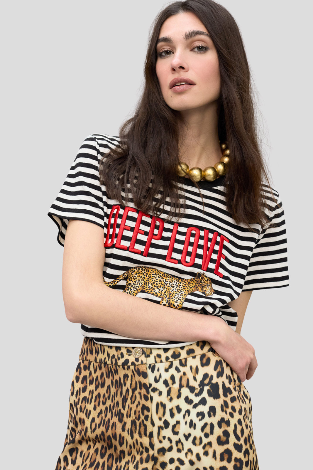 Изработена от мека памучна материя и допълнена с впечатляващ леопардов дизайн