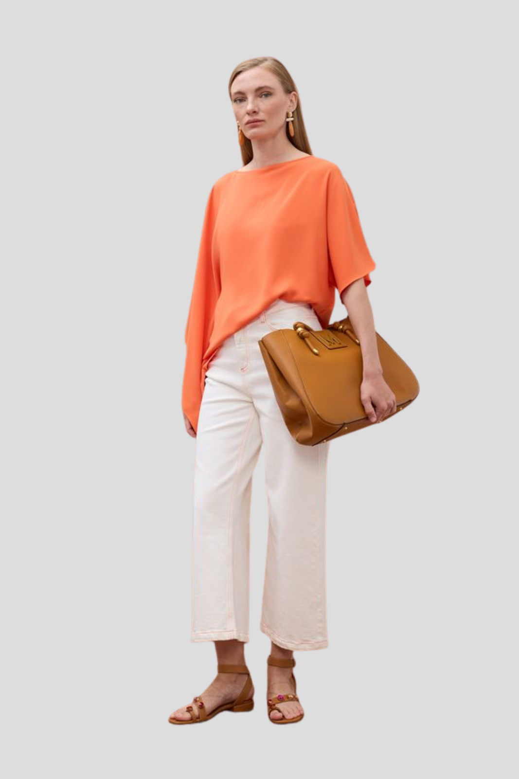 Блуза в прав силует с елегантни пелеринени ръкави, излъчваща модерна финес и стил.