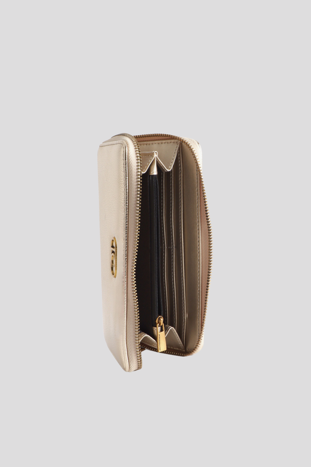 Портмоне с метален златист ефект и закопчаване с цип