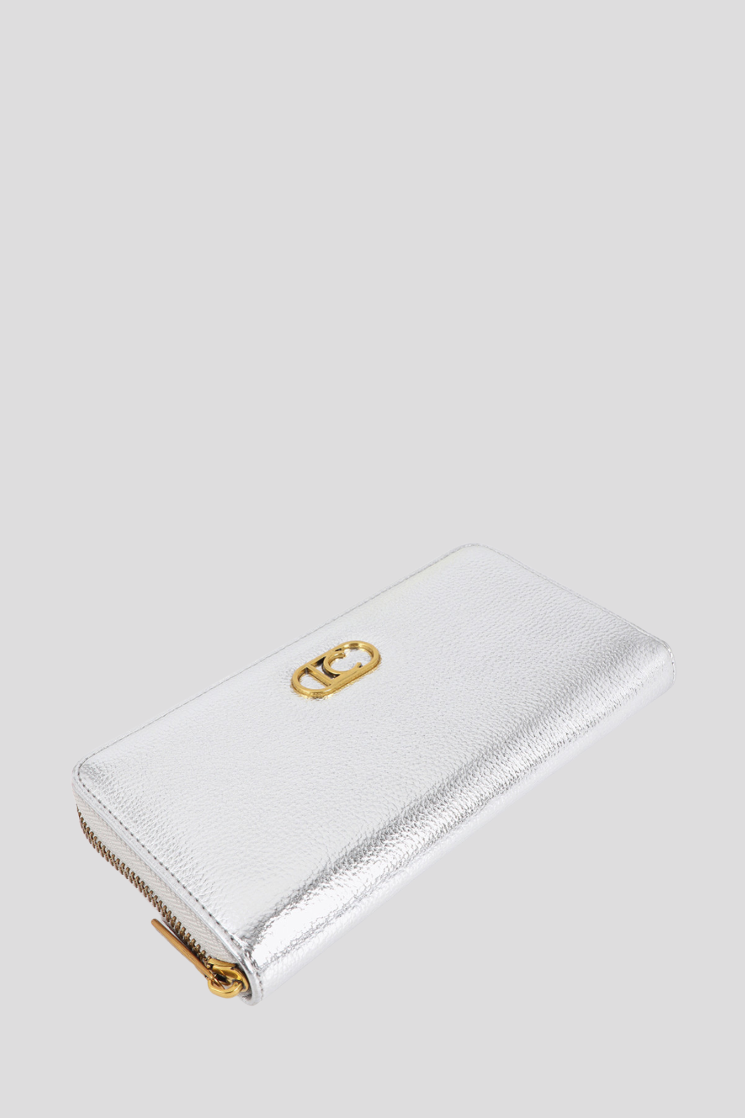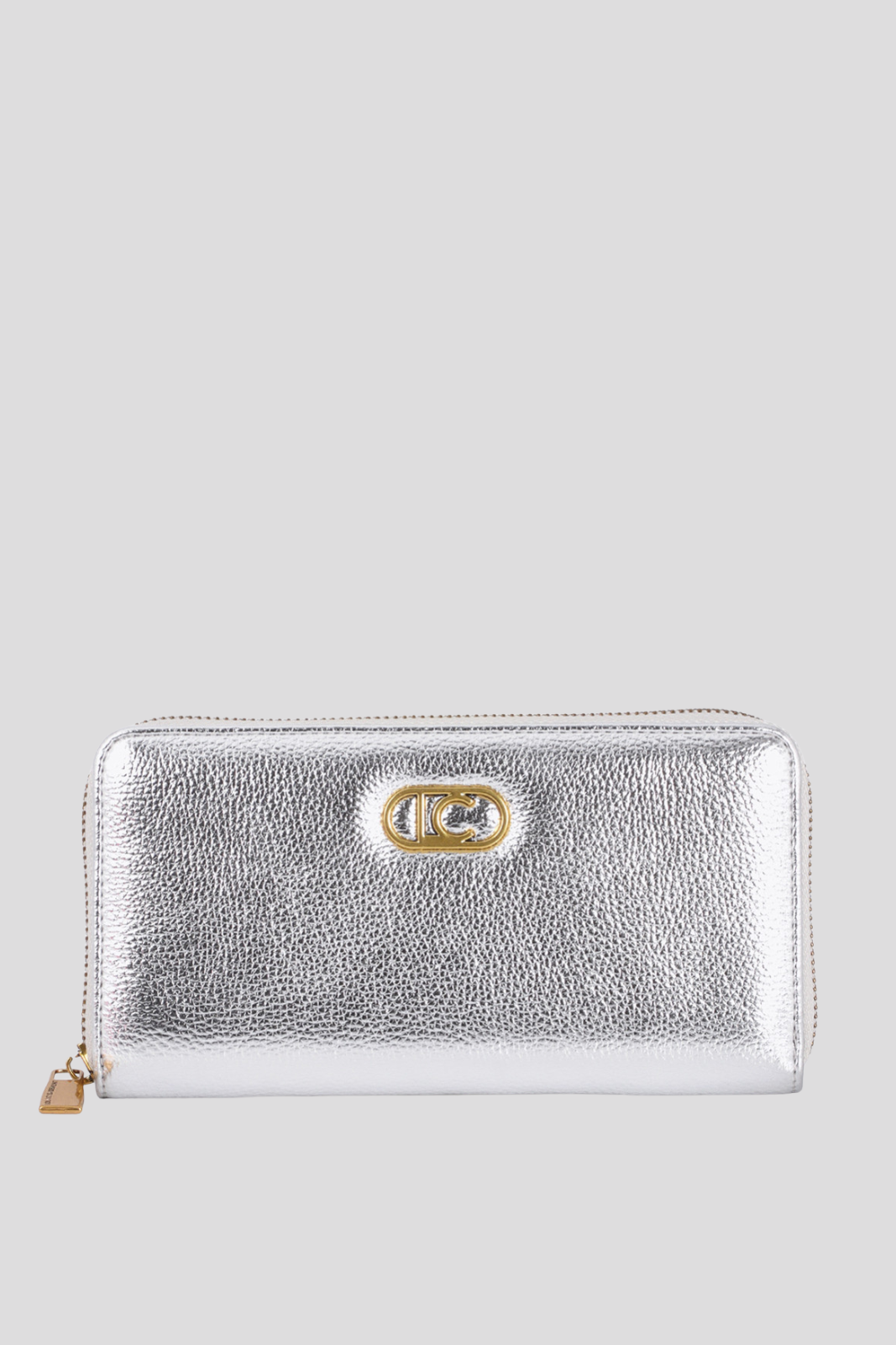 Портмоне с метален сребрист ефект и закопчаване с цип