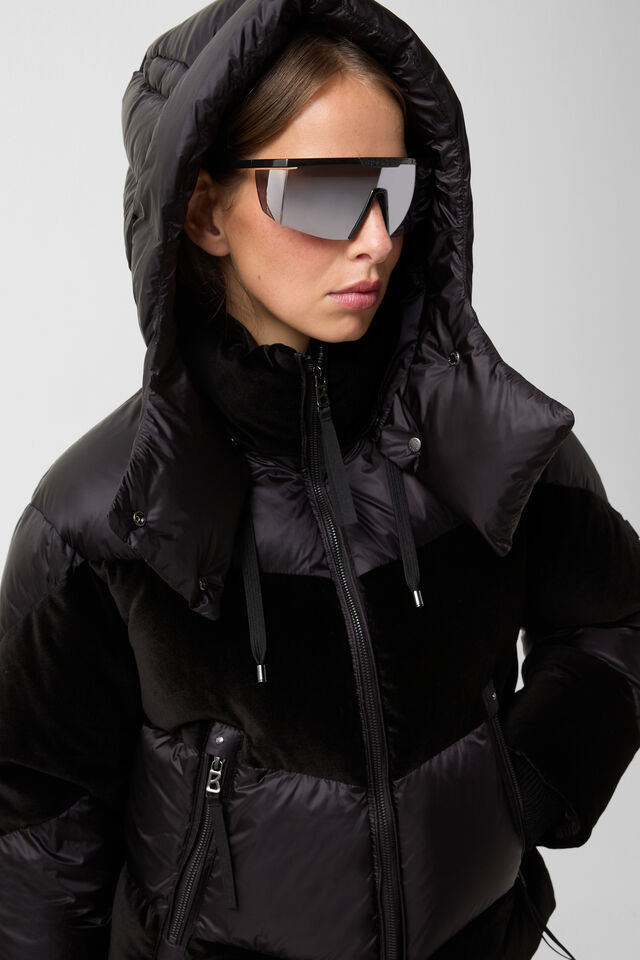 Subtle design accents such as embossed BOGNER eyelets, grosgrain ribbon with metallic B logo on the hood, rubber logo patch on the sleeve and B-labels on the zippers highlight the brand’s distinctive handwriting