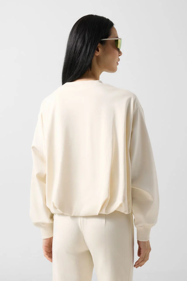 The elastic hem with pleats completes the piece with a precise and elegant finishing touch