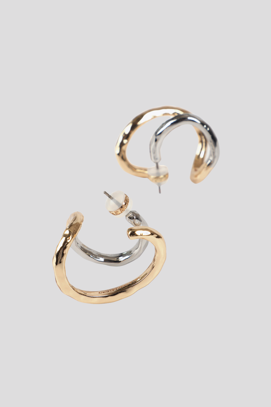 Метални обеци с двуцветно покритие в златисто и сребристо