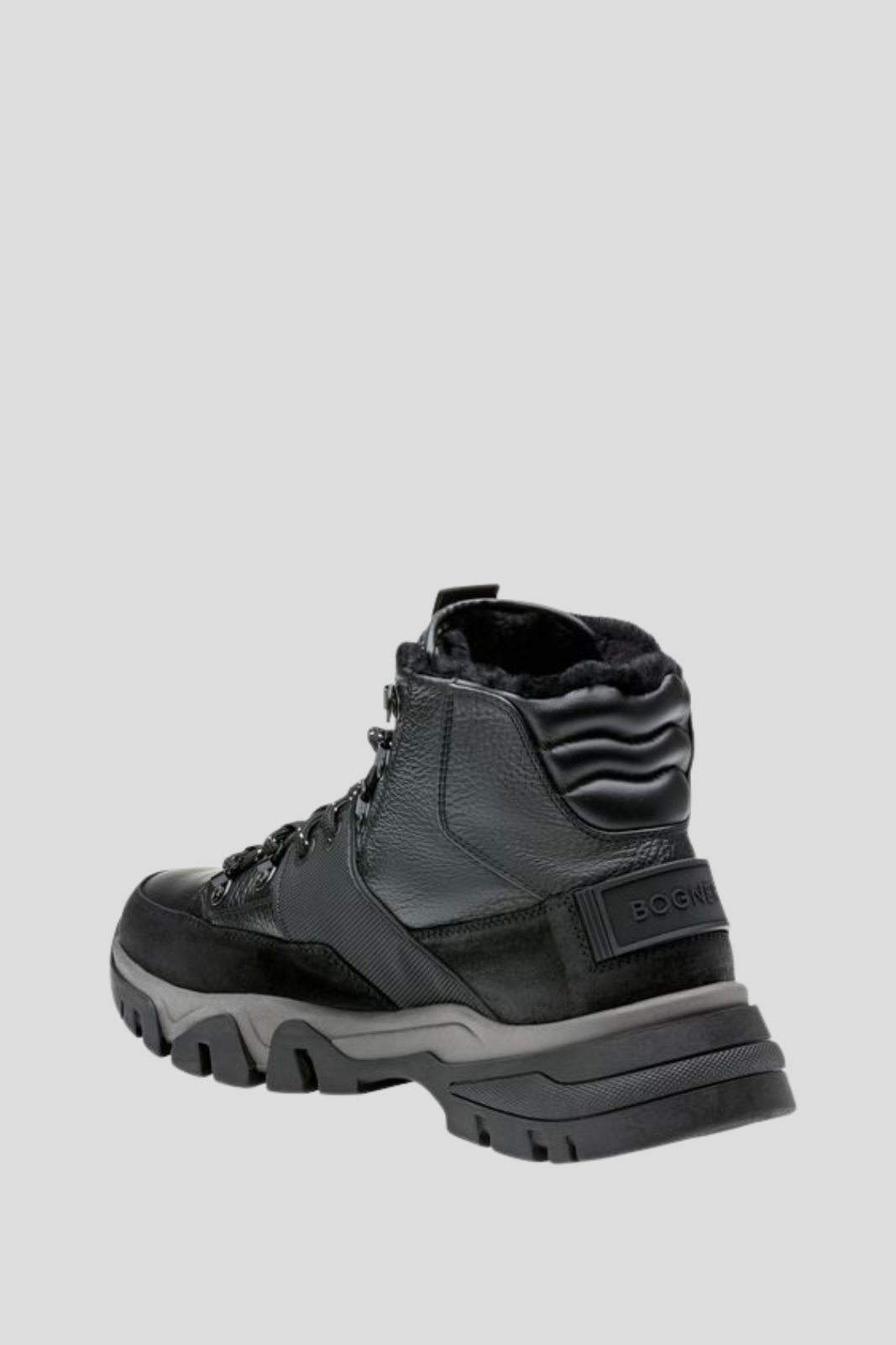 Мъжки кецове изработени от премиум восъчен велур и фин филц с класическо закопчаване с връзки и заоблена капачка на пръстите отличаващи се с детайли с нашивка BOGNER панделка от гросгрен върху езика релефни отвори за връзки с лого и надпис B-signé и апликация отстрани дизайнът е допълнен от подсилена пета с гумена каишка тонални декоративни шевове както и изключително мек хастар и подвижна стелка от агнешка кожа за максимален комфорт
