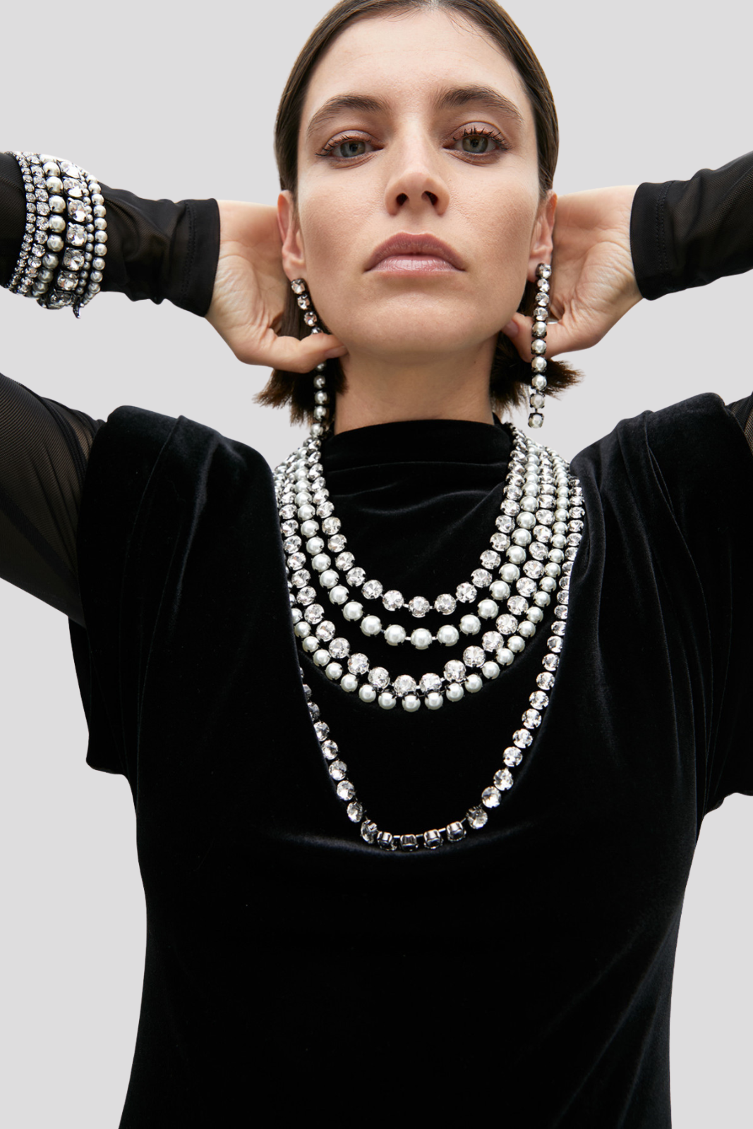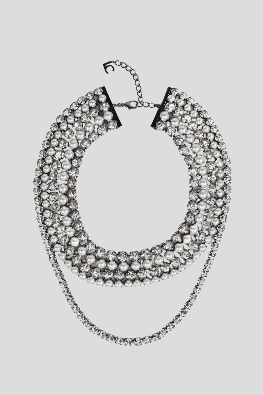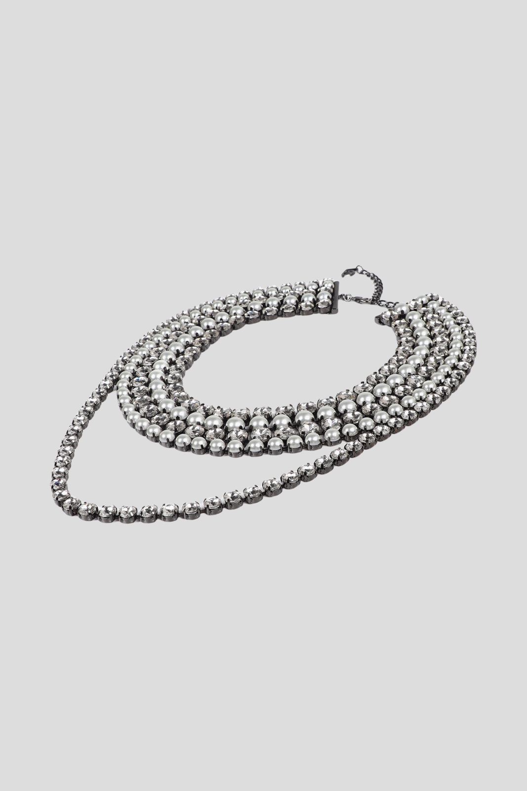 Елегантно многослойно колие с блестящи кристали и синтетични перли