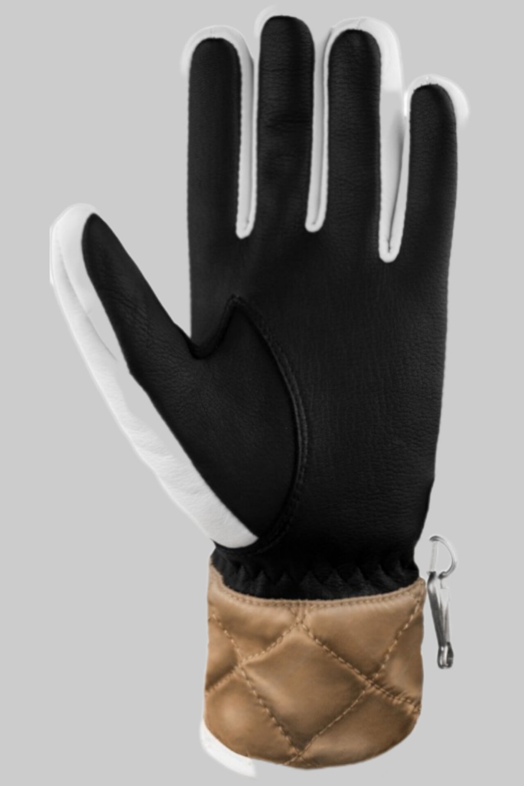 Quilted down ski jacket with lambskin leather sections fixed hood with drawcords and embossed B-stoppers long sleeves cuffs on sleeves with ribbed inset lining two-way zip with B-shaped snap closure lined with BOGNER pouch ski card pocket with zipper on sleeve two side pockets with zipper inside pocket inside ribbon with logo and brown color floating lining with letter design durable water-repellent coating water column 10,000 mm breathability 10,000 g per m² per 24 hours goose down and feather warming lining elastic snow protector with teak flapsnap fastening on the inside hem finish with drawstrings and stopper back length 60 cm