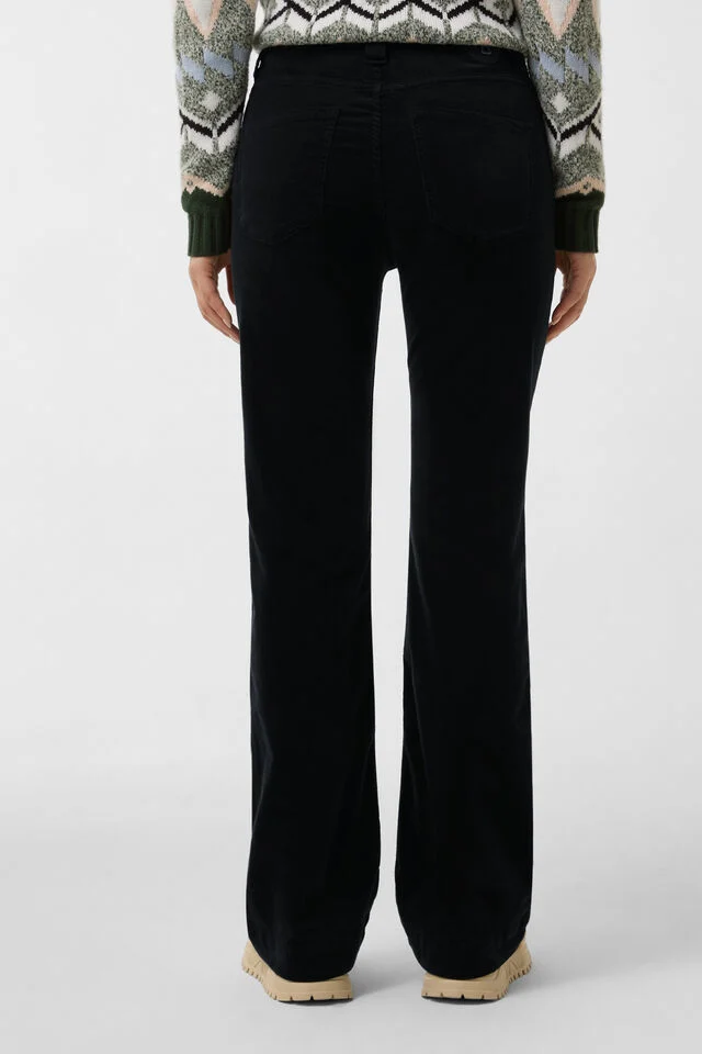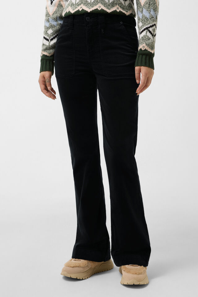 Velvet trousers in classic straight-leg silhouette with elegantly flared waist