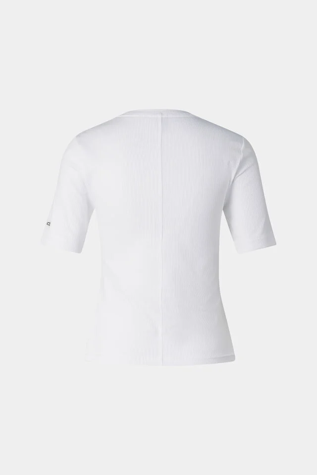 FIRE+ICE logo print on sleeve, logo on hem, rounded hem on back