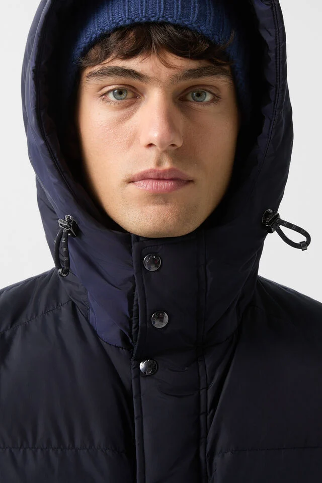 Men’s down jacket in a straight silhouette is designed for those who appreciate both elegance and practicality