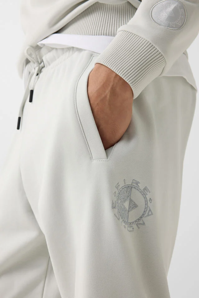 Two side patch pockets complemented by discreet side embroidery as an expression of brand identity