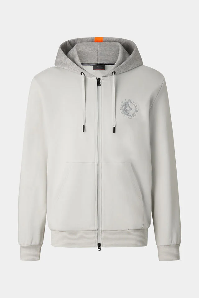 Дългите ръкави са елегантно оформени с еластични маншети, гарантиращи комфорт и стабилност при носене, докато двупосочният цип с характерен