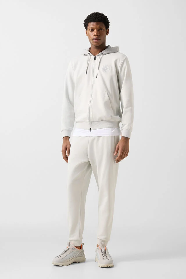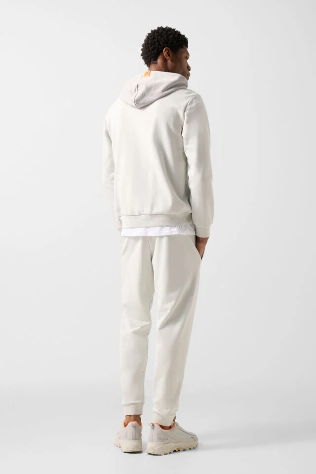 Разделеният джоб тип „кенгуру“ допълва визията с небрежна изисканост и функционален характер