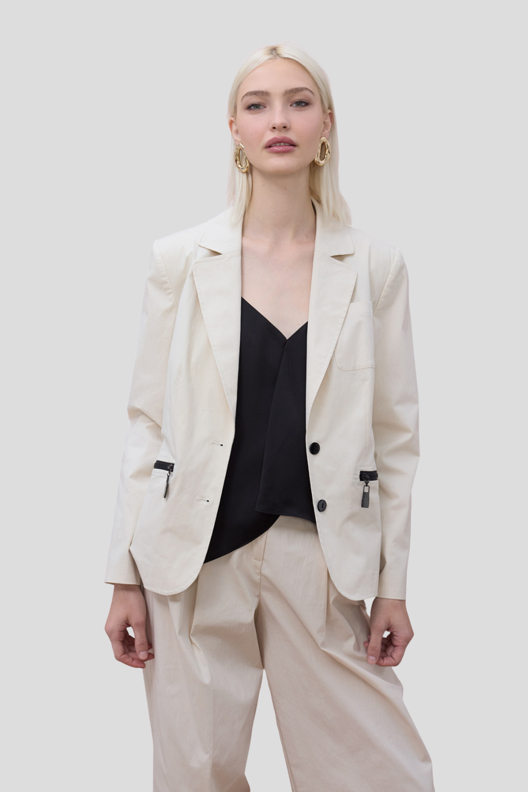Fitted Blazer with Lacquered Zipper Pockets