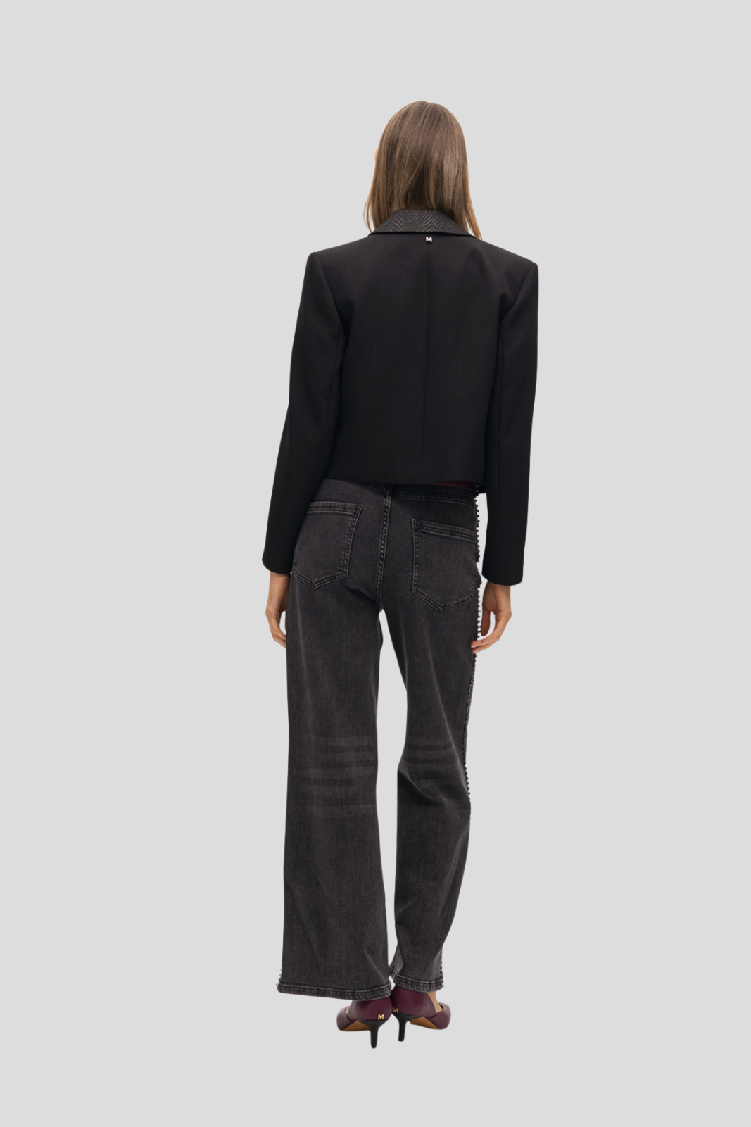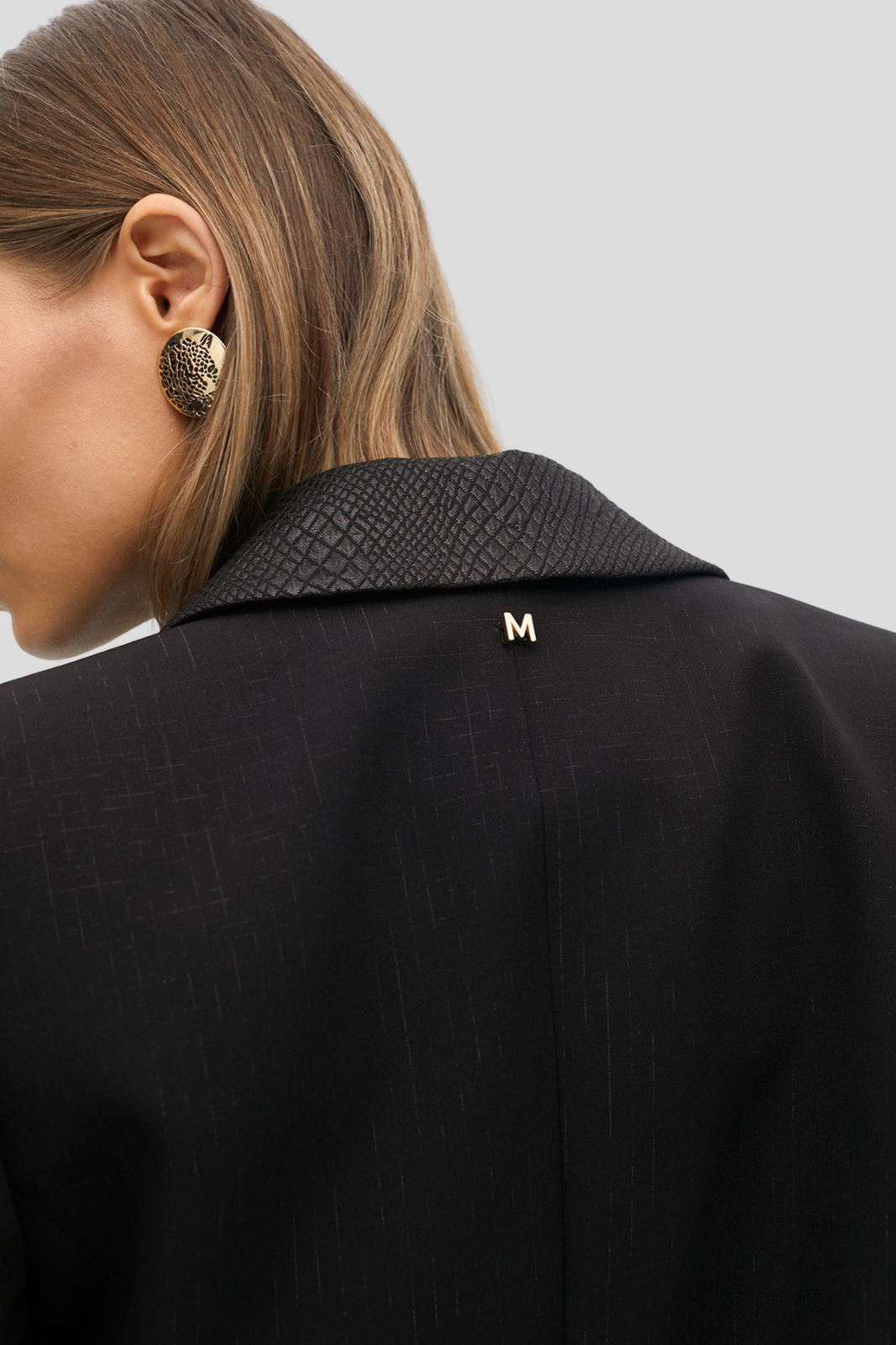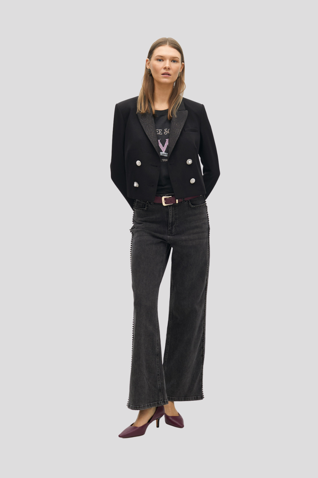 Елегантно късо сако с ревери в животински принт и бижутени копчета