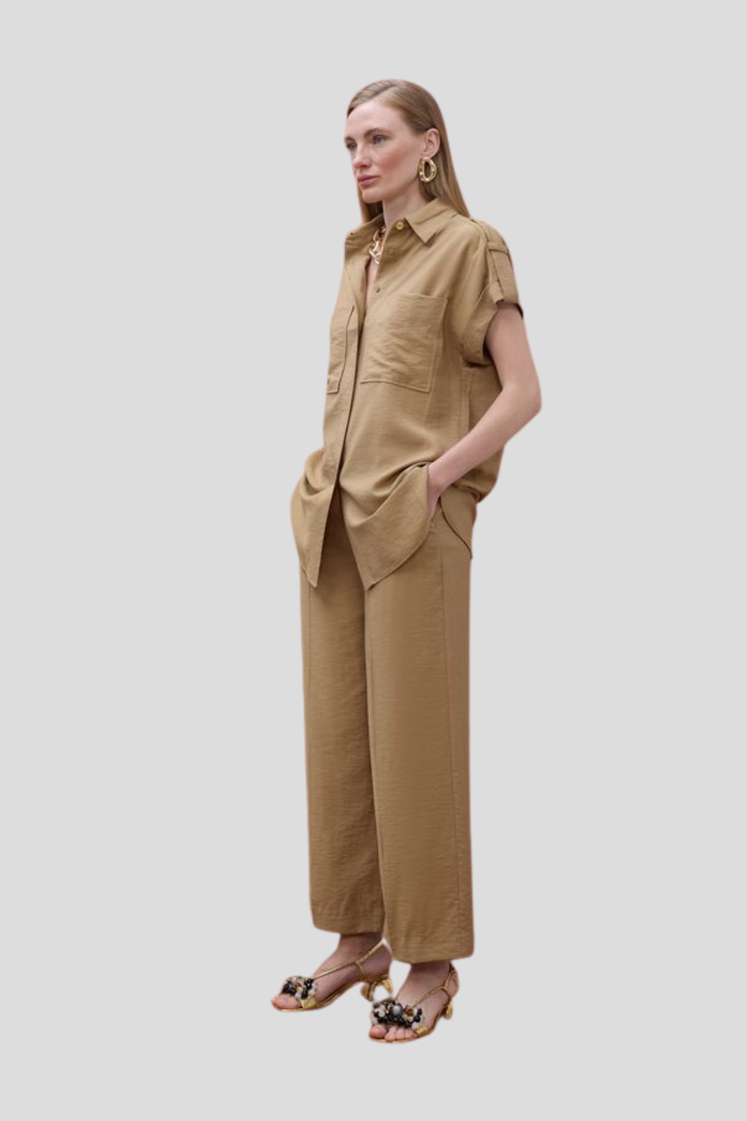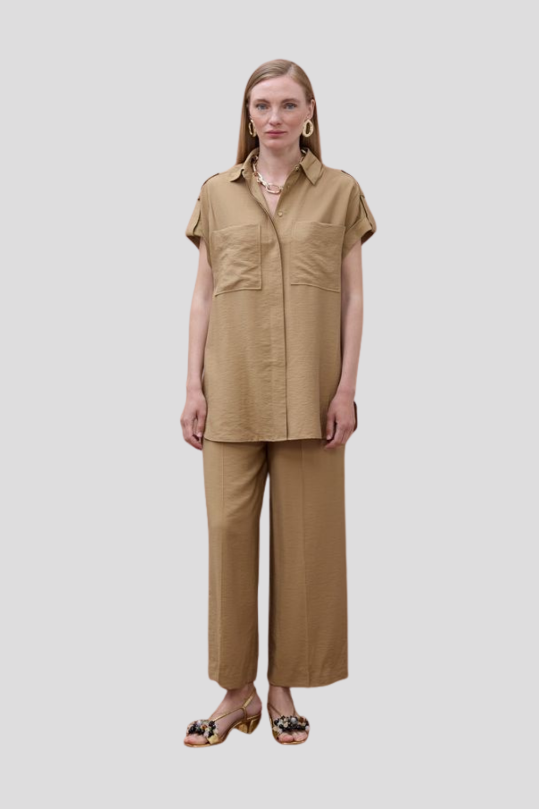 Свободната кройка подчертава естественото движение на тялото, а минималистичният дизайн позволява лесно съчетаване с разнообразни горнища, създавайки изискана и модерна визия за всеки ден.