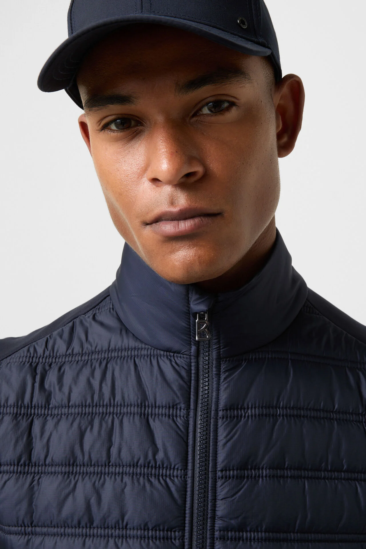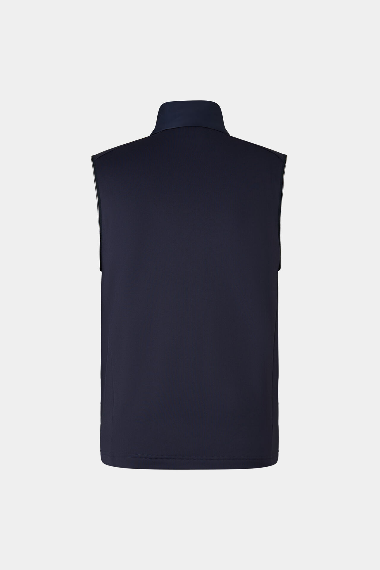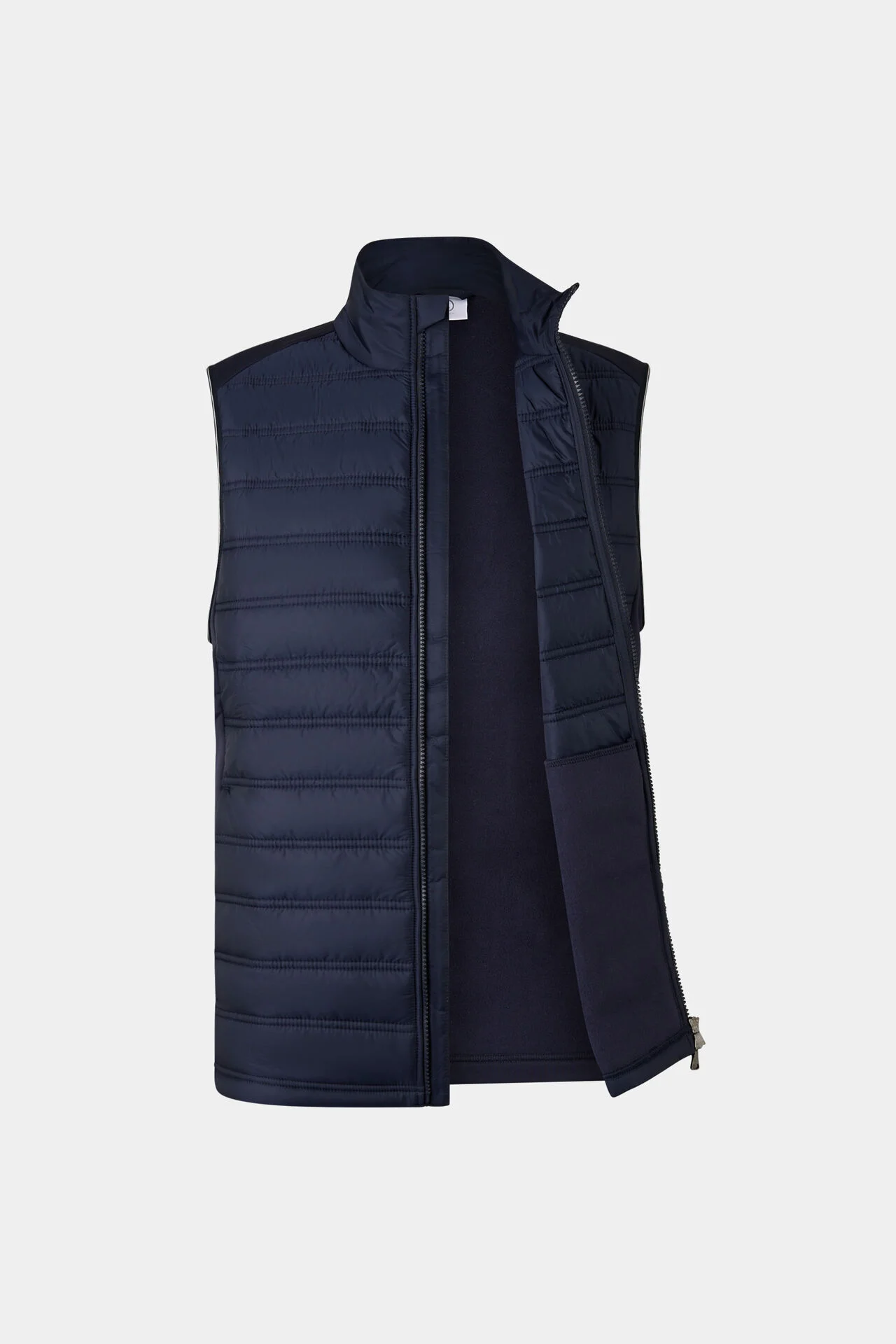 A hybrid vest with a measured straight silhouette, combining technical precision with a distinctive aesthetic