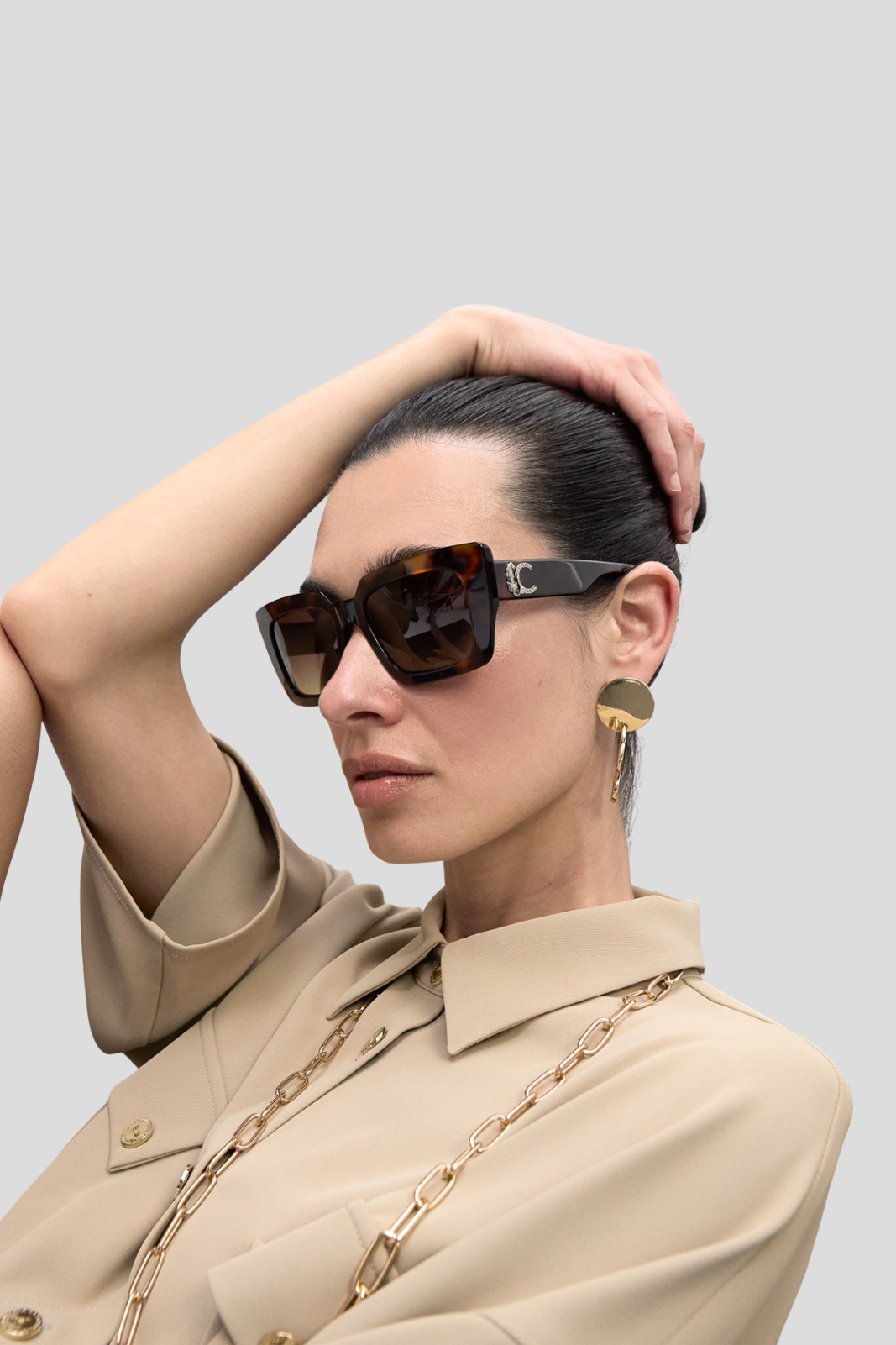 Rectangular sunglasses with timeless design and exclusive leopard logo on the handles