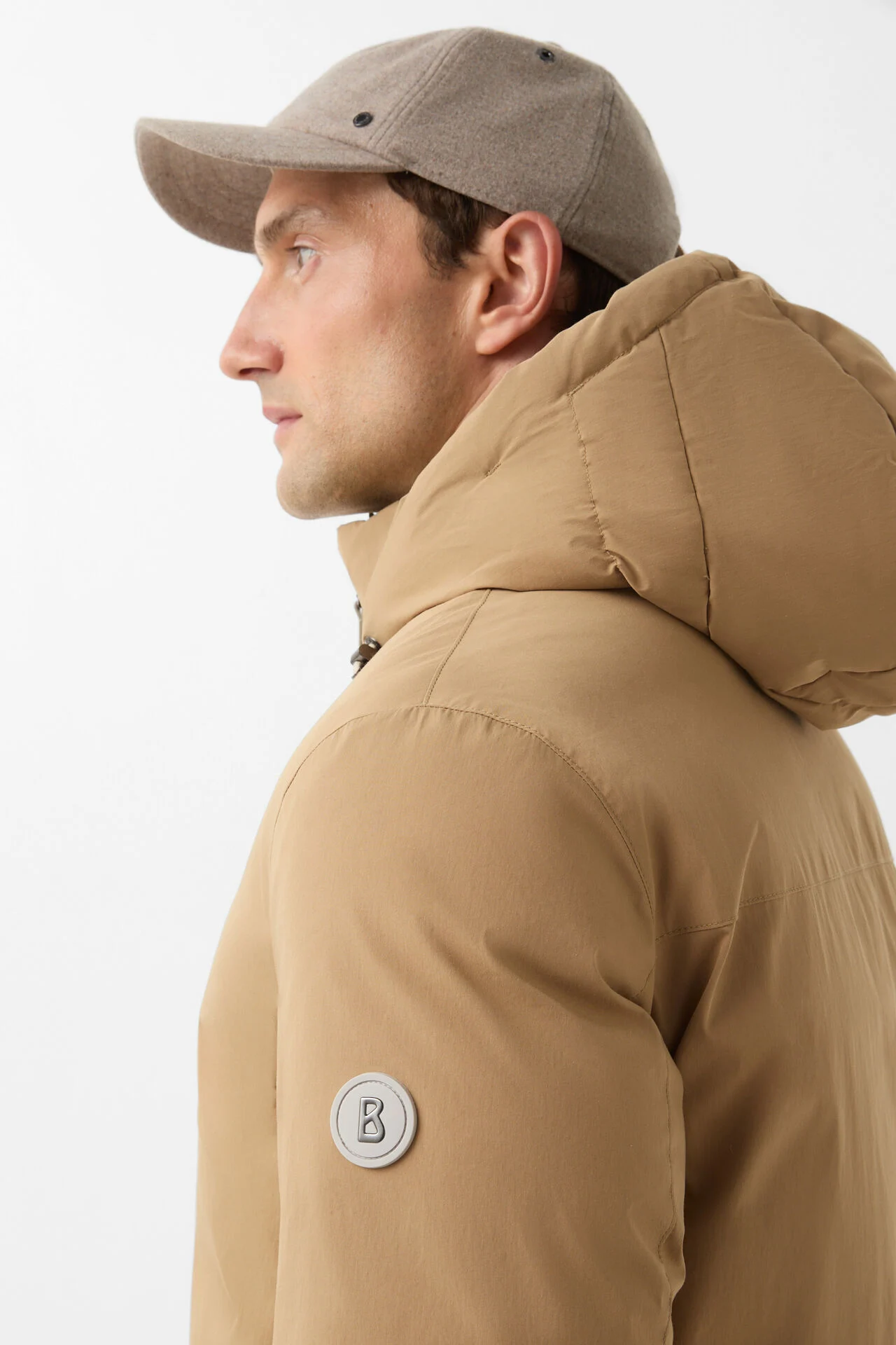 Elegant model with ribbed collar and fixed hood with drawstrings, embossed stoppers and BOGNER eyelets for a perfect fit