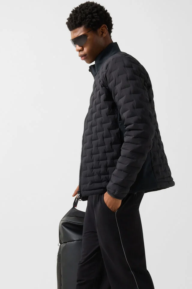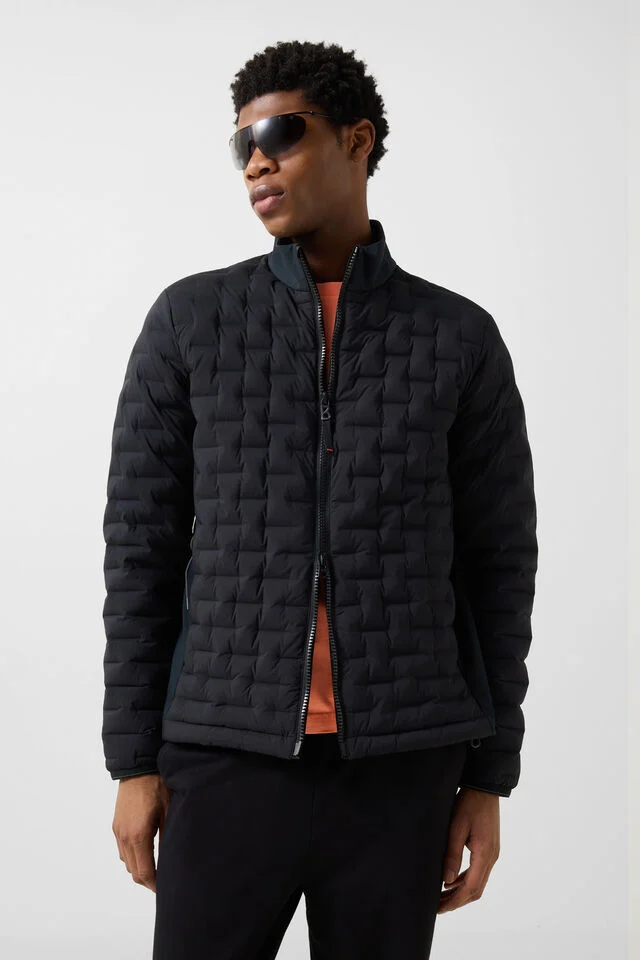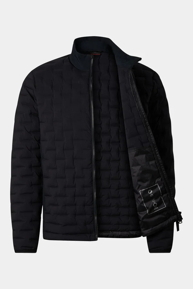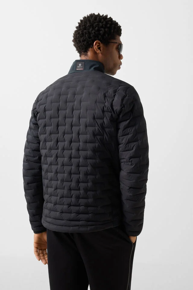 Lightly lined with down blend (650 Cuin), side panels and collar made of non-compressible stretch, manufactured without the addition of PFAS, which provides water repellent properties without the use of harmful and hard to degrade chemicals, with careful maintenance functionality and durability are maintained