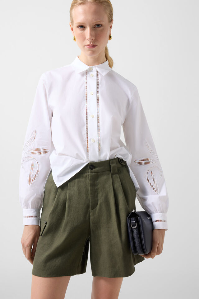 Attached waistband with belt loops for belts up to 5 cm and side fastenings