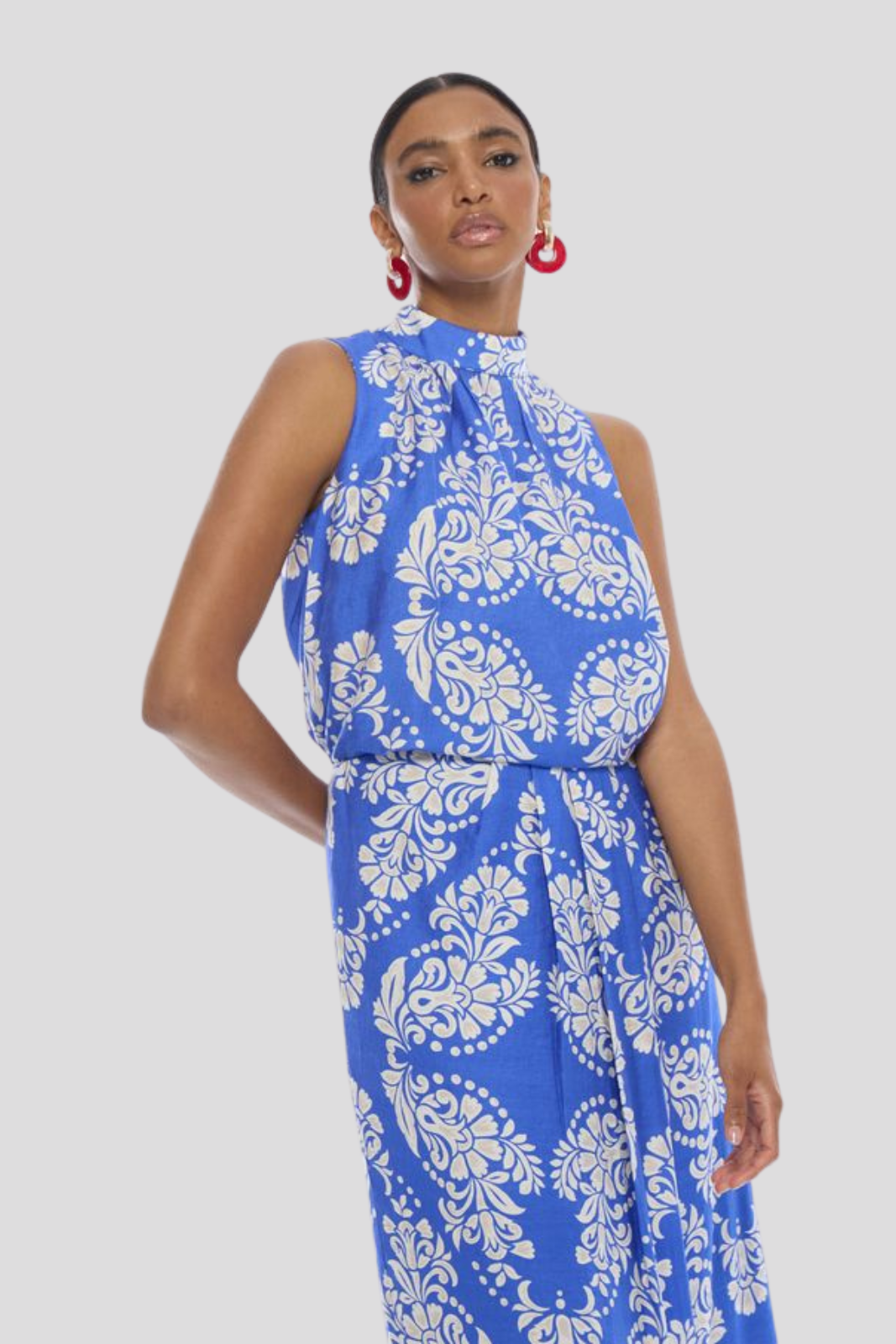 Блуза с висока яка и пейсли десен в класически силует, излъчваща елегантност и изтънчен стил