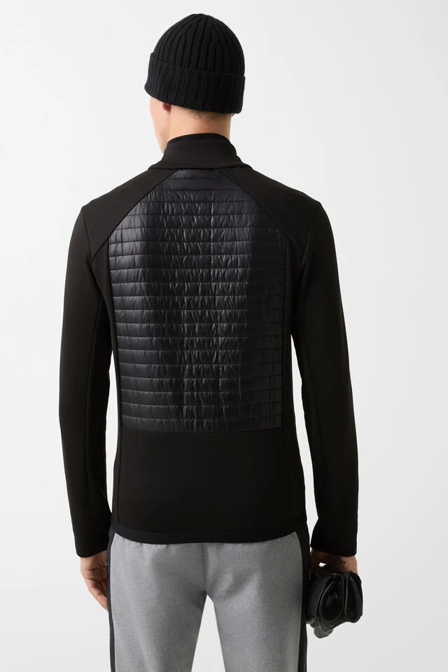 Men’s second layer jacket in a straight silhouette, made with quilted ripstop panels on the front and back and a stand-up collar for a clean silhouette