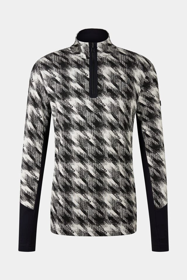 First layer blouse with classic silhouette in an elegant jacquard design with BOGNER lettering, complemented by contrasting elasticated sections of the finest nylon fabric