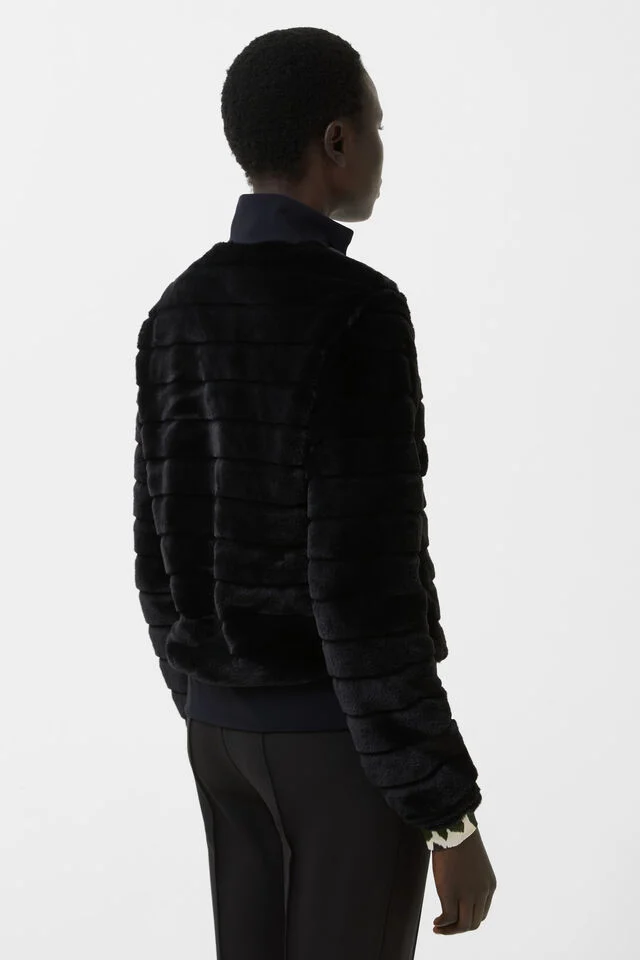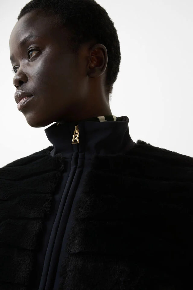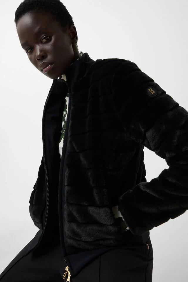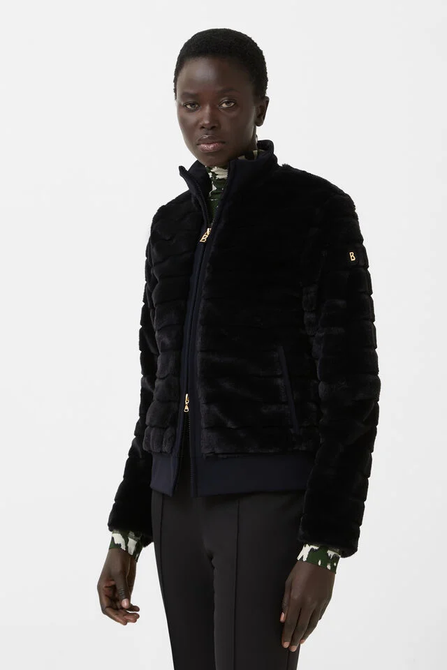 The long sleeves are finished with clean cuffs and the front has a two-way zip with a distinctive B-shaped pendant