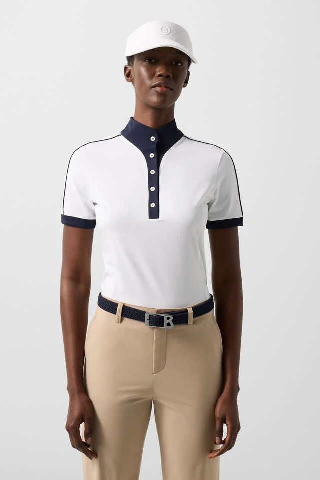 The short button fastening with BOGNER buttons and the edging on the shoulders and sleeves emphasise the refined line of the design