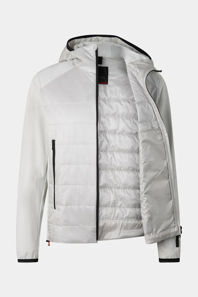 Хибридно яке с класически силует, фиксирана качулка с връзки за стягане