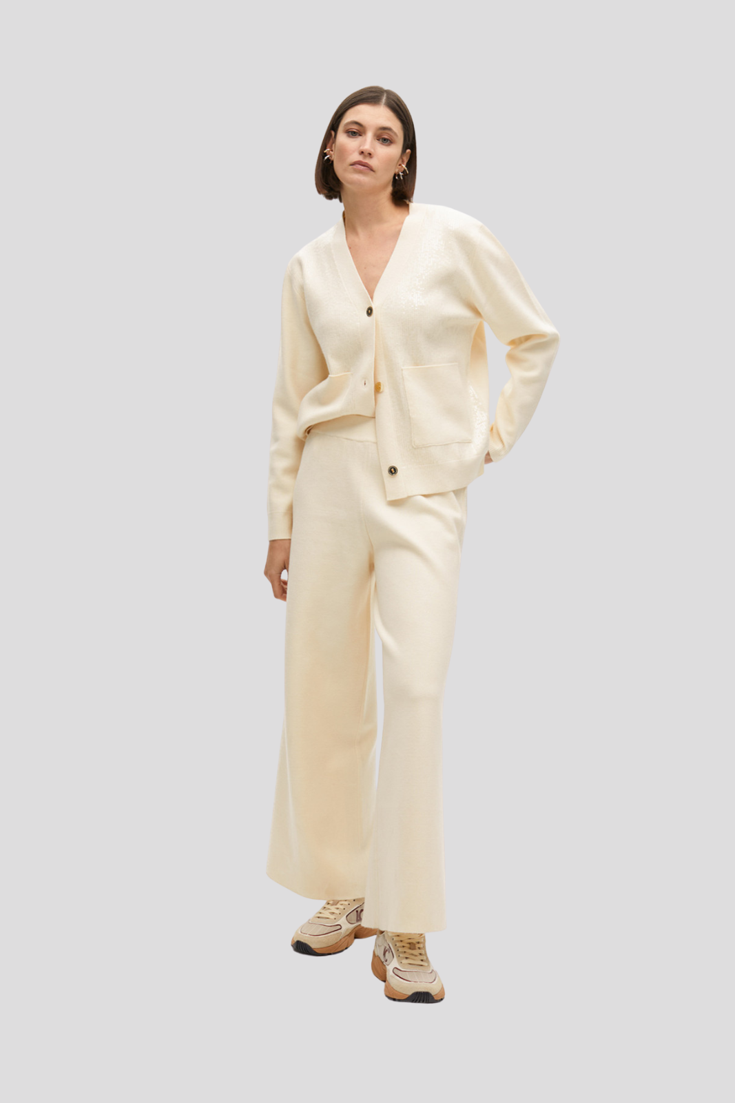 Knit trousers with a flared cut and fancy sequin details on the sides