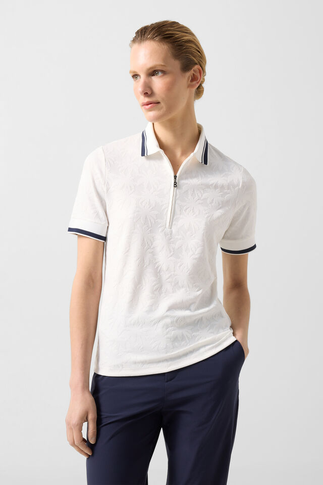 Ribbed polo collar and cuffs with striped details add a premium finish, while a short ribbed B-top adds functional elegance