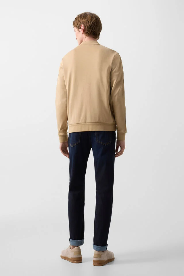 Sweatshirt with straight silhouette, highlighted with high collar