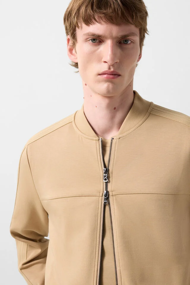 Long sleeves with ribbed cuffs and two-way zipper with B-trailer provide functionality and a premium accent