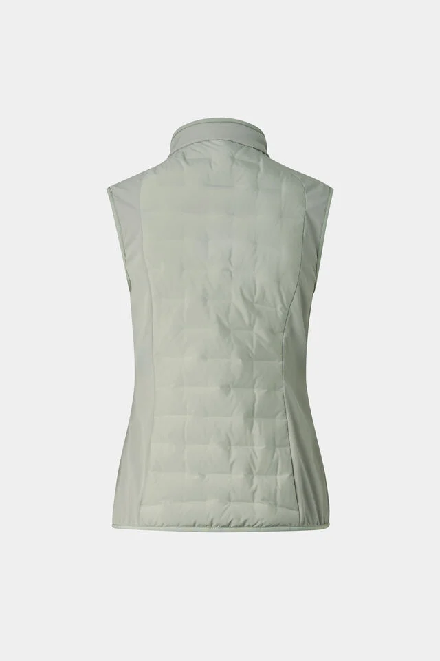 Hybrid vest with a classic silhouette and quilted sections, featuring a padded stand-up collar, windproof openings with narrow cuffs, and a reinforced two-way zipper with B label. The design includes two side zip pockets with strap closures, a B rubber patch on the hem, and an internal logo tape. Finished with durable water-repellent coating, insulating duck down lining, and a narrow hem cuff for optimal comfort.