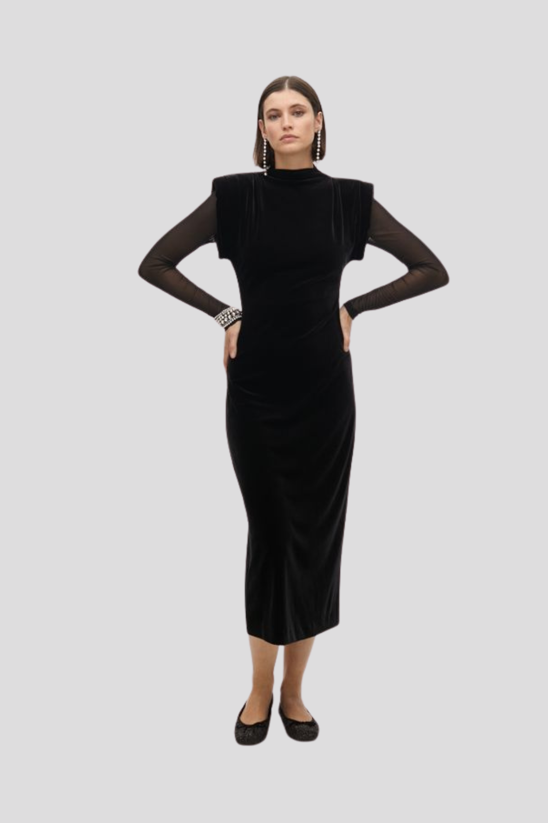 Ръкавите са изработени от изискано тюлено мрежесто покритие, което придава допълнителна уникалност и луксозен характер на модела