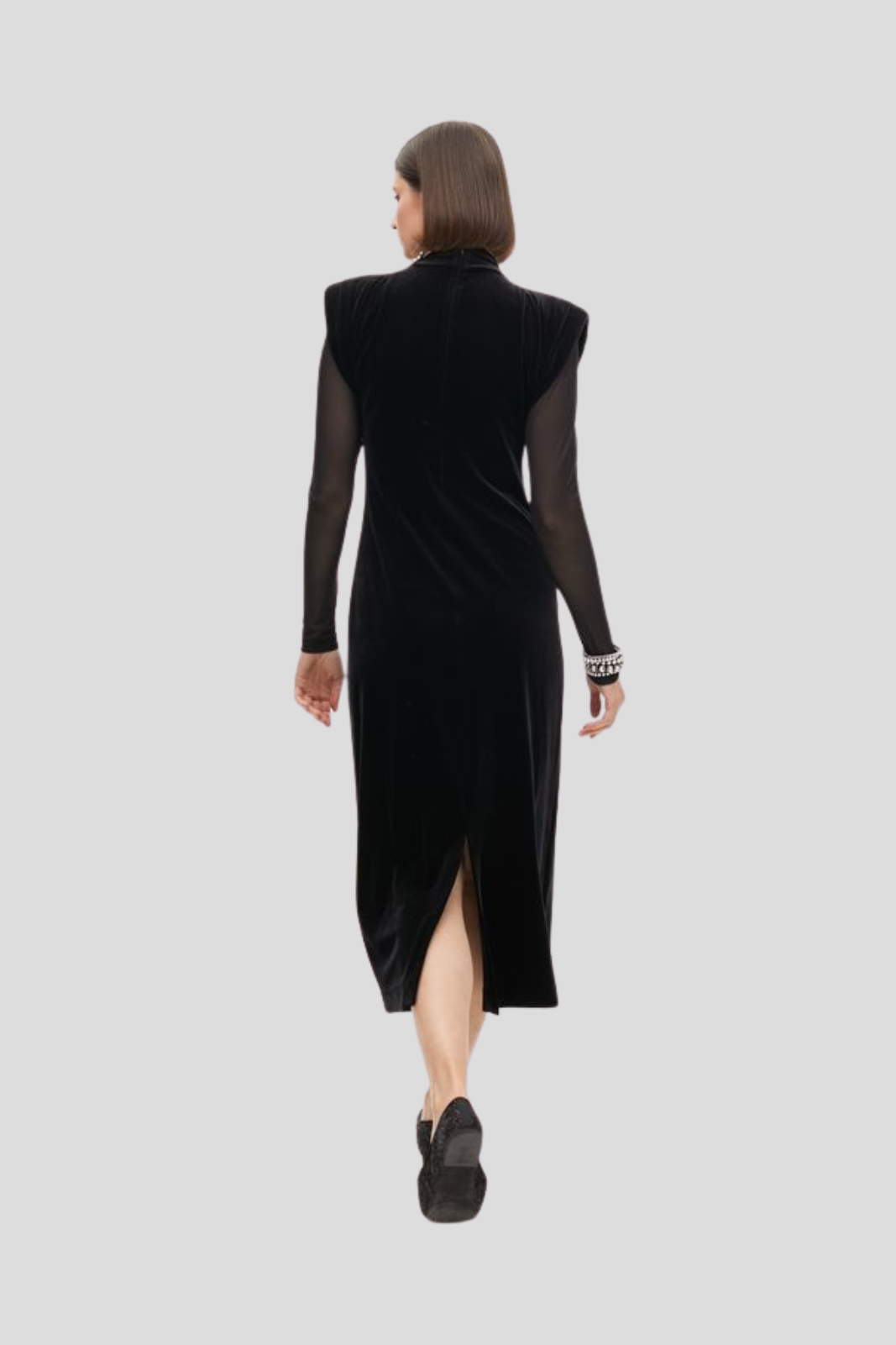 Ръкавите са изработени от изискано тюлено мрежесто покритие, което придава допълнителна уникалност и луксозен характер на модела