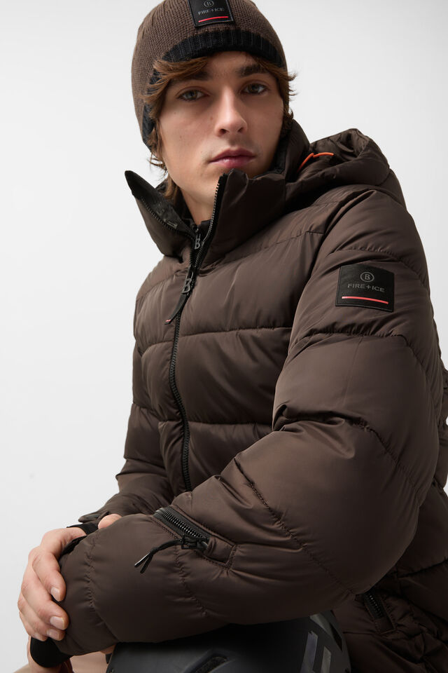 Fastening is a two-way zip with a B-pendant, lined with a FIRE+ICE panel, and functionality is complemented by two zipped side pockets, a zipped sleeve pocket, a concealed zipped back pocket and an internal pocket